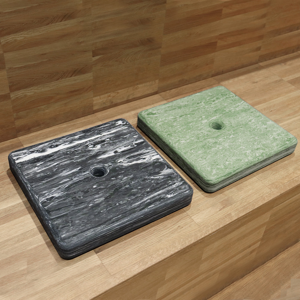 Kuddarna finns i flera marmorerade färger, inspirerade av naturen. De är idealiska att använda på golv, bänkar, trappor osv.