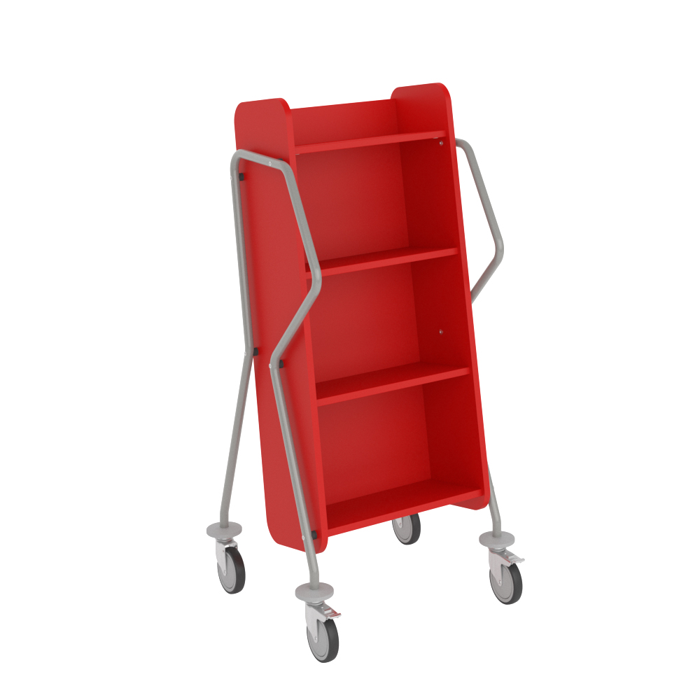 Ergonomisk, användarvänlig, enkelsidig bokvagn med 4 hyllplan med generösa hyllavstånd. Idealisk även för böcker i det lite större formatet.