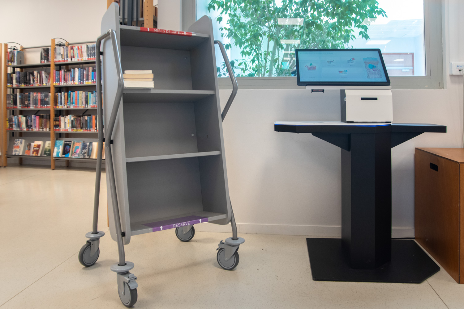 Bokvagnens lutning säkerställer effektiv förvaring och ger god översikt över de böcker du vill hantera.