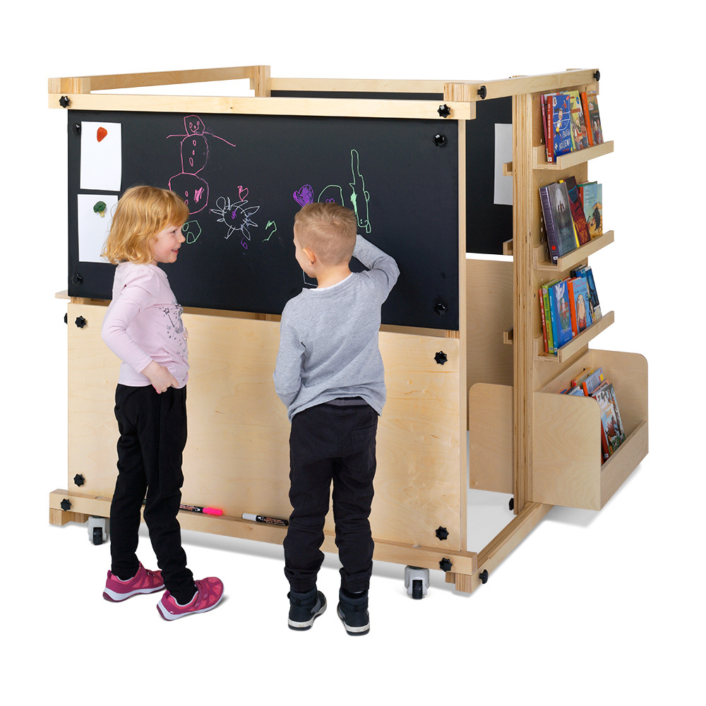 Cubik är ett allsidigt system för att skapa rum med scenografi. Cubik består av ett ramverk med väggelement i plywood och i svart laminat med skriv-/magnetfunktion.