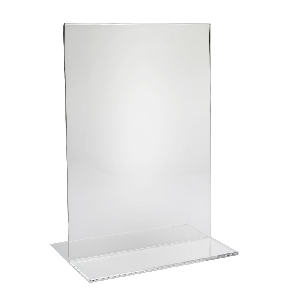 Praktiskt dubbelsidiga ställ för skyltning och information för bord, diskar, hyllor skyltfönster osv..