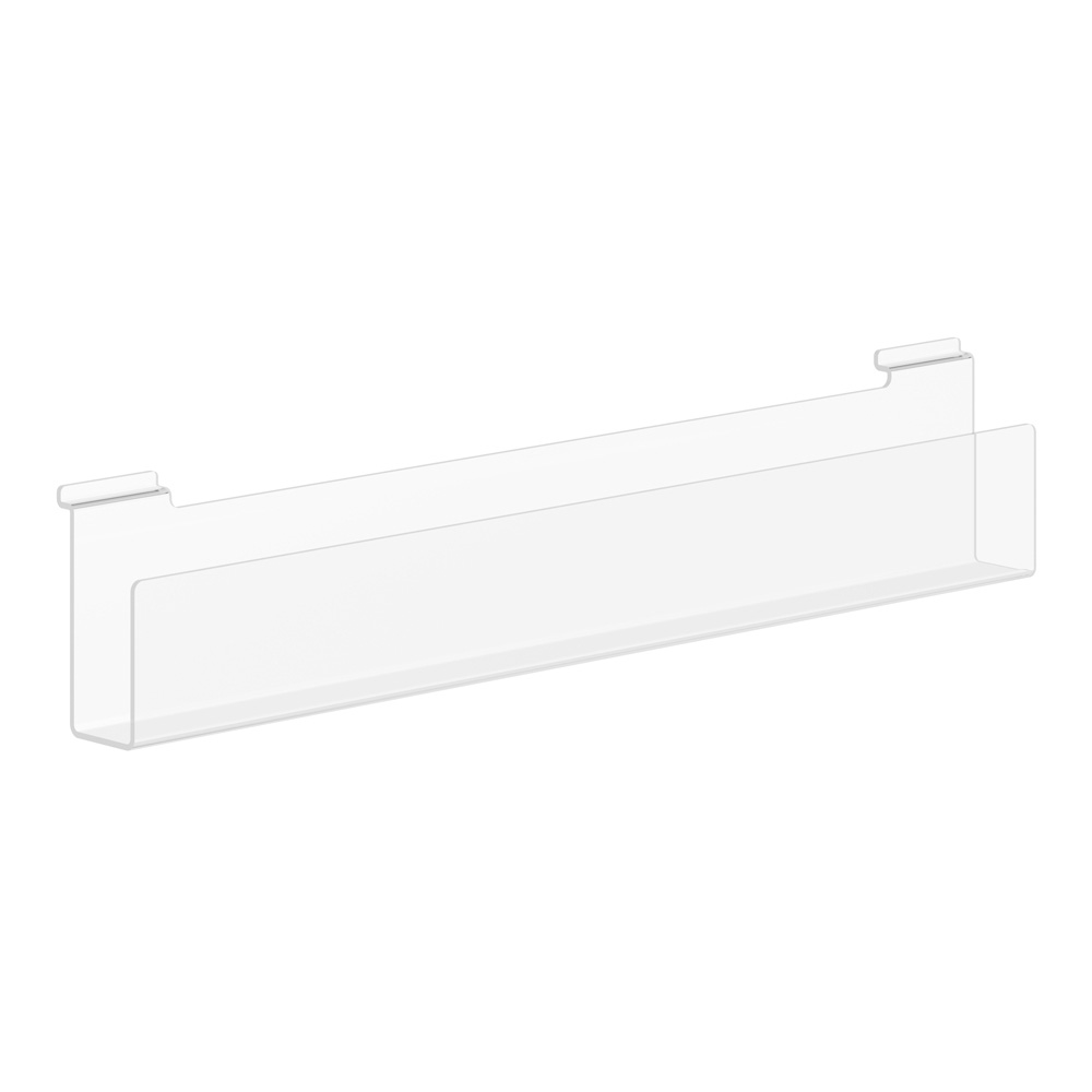 Hållare i akryl lämplig för spårade hyllgavlar och Quattro exponeringstorn.