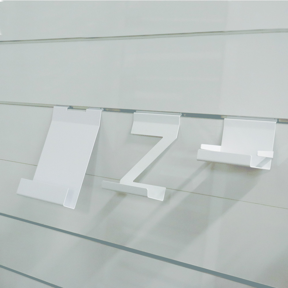 Hållare i metall lämplig för spårade hyllgavlar och Quattro exponeringstorn.