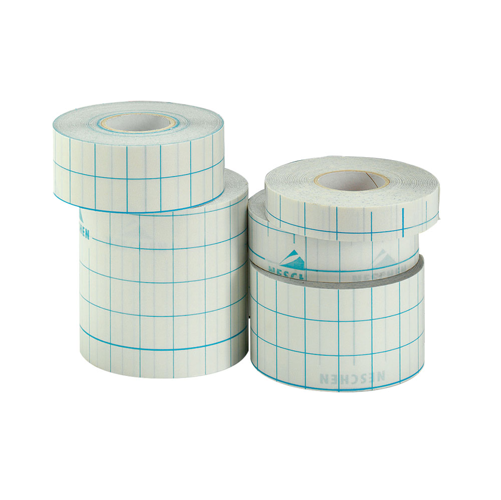 Självhäftande, transparent, blank plastfilm; mjuk. Fäster omgående; ej korrigerbar.
