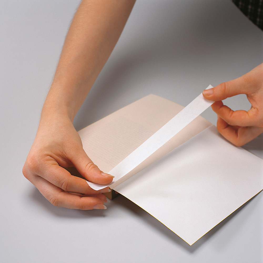 Självhäftande, vitt, syrafritt papper med långa fibrer vilket gör att det ej rivs av lätt. Åldersbeständigt (gulnar ej; träfritt papper), elastiskt specialpapper. Idealisk för att sätta in lösa boksidor, för förstärkning mellan pärm och inlaga (främst i pocketböcker) och för att laga skadade hörn.
