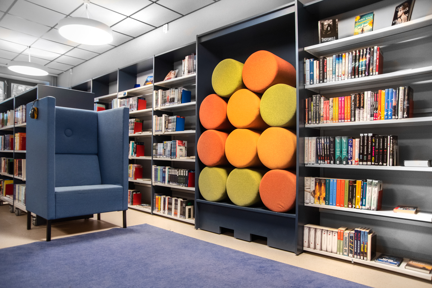 Vi talar laminerad björkplywood; här med synliga kanter. Allt för att få en såväl tålig yta som hållbar konstruktion. Perfekt för de mest krävande biblioteksmiljöerna!