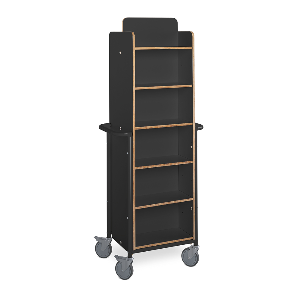 Denna bokvagn kan användas som ett hyllsystem som kan flyttas runt i biblioteket efter var den behövs.