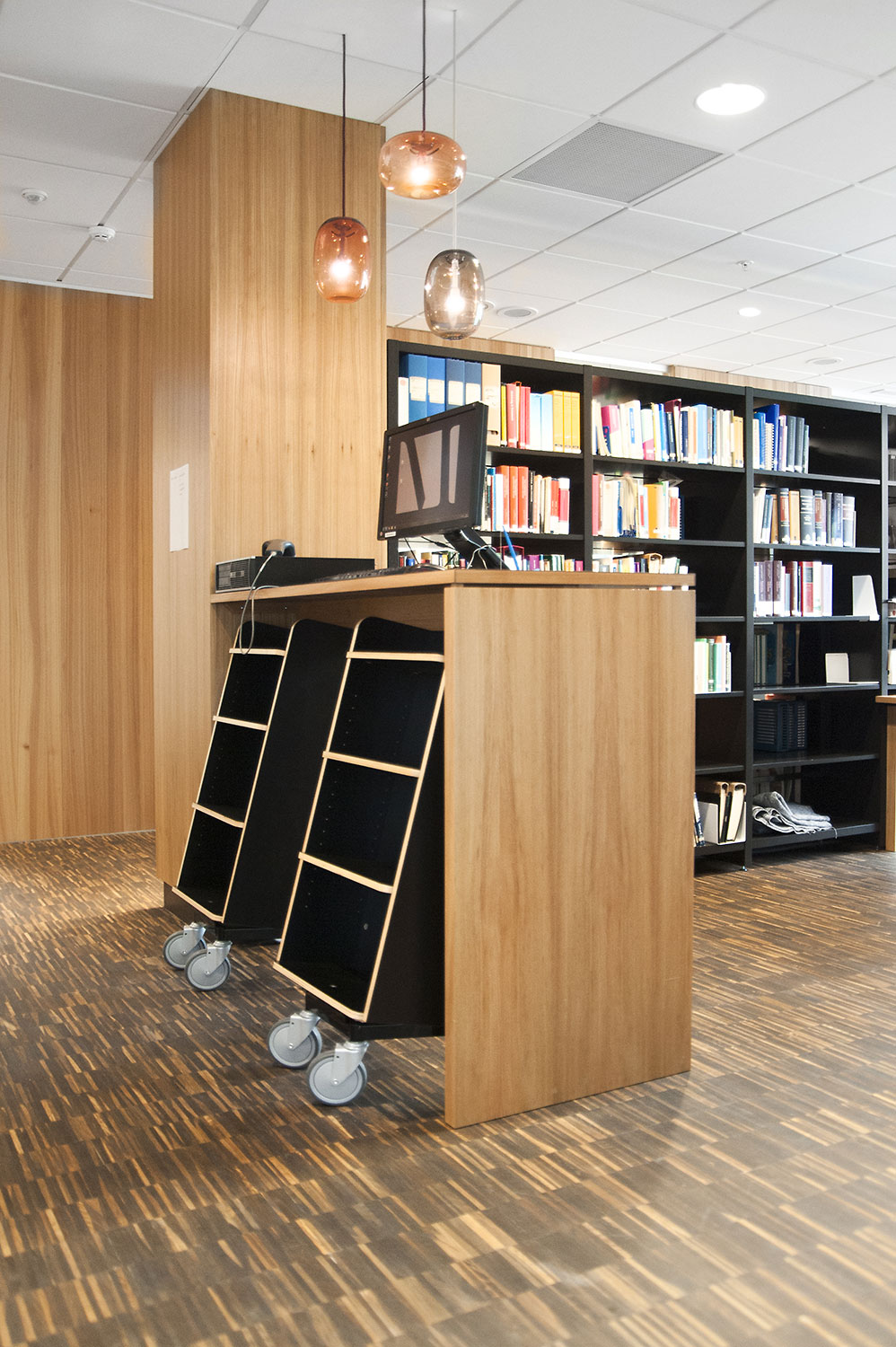 Vi talar laminerad björkplywood; här med synliga kanter. Allt för att få en såväl tålig yta som hållbar konstruktion. Perfekt för de mest krävande biblioteksmiljöerna!