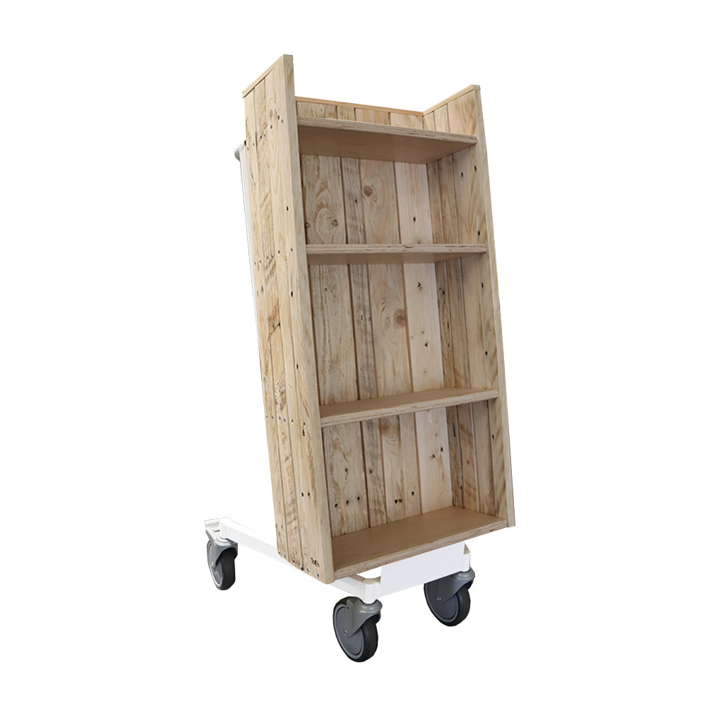 Lättanvänd, enkelsidig bokvagn med fyra fasta hyllplan.