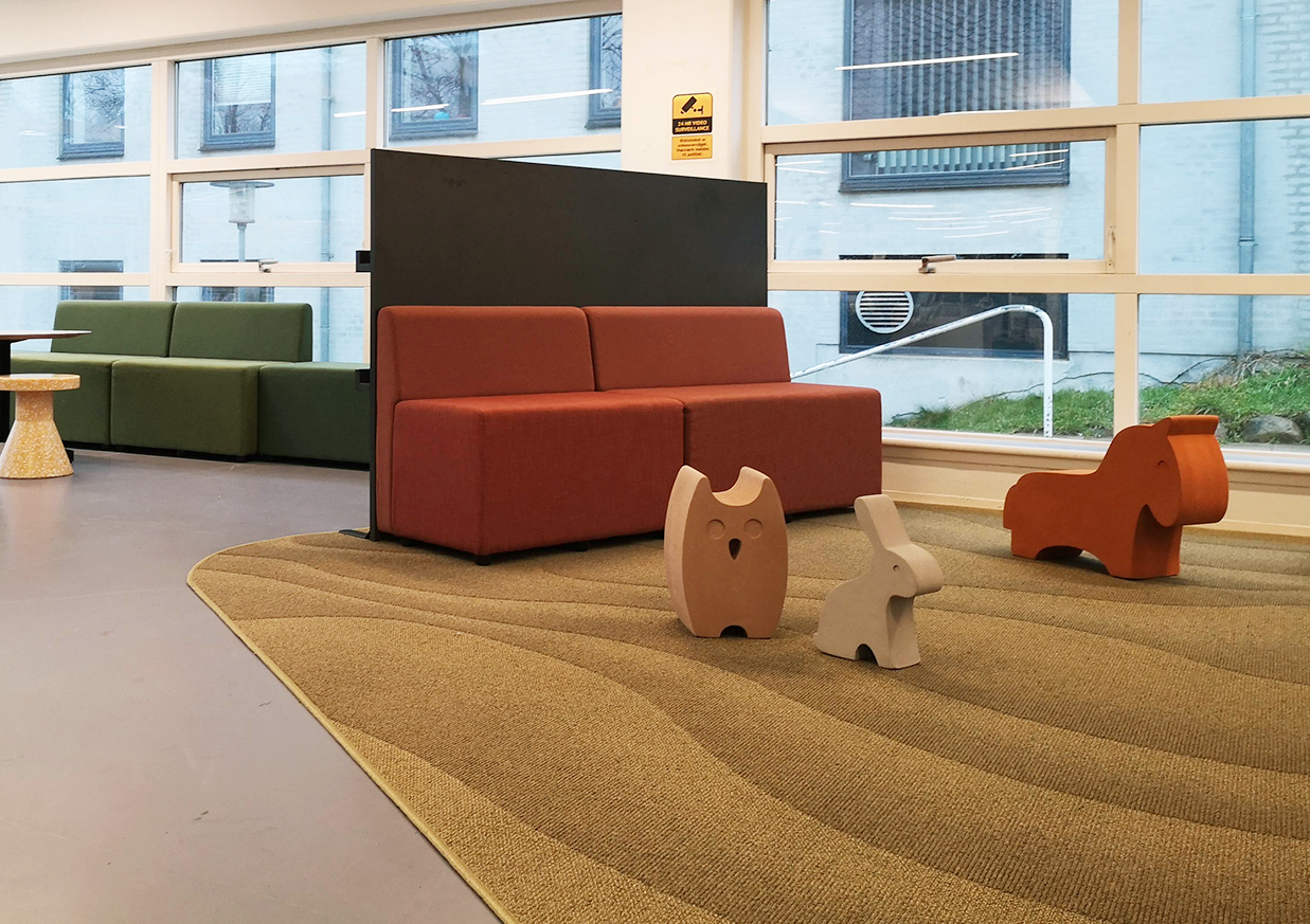 Bokhyllor och studiebord i trä ger en vacker och varm kontrast till resten av byggnaderna på Wateringen bibliotek i Holland respektive Esbjergs sjukhus i Danmark med association till friluftsliv. Rummen är upplysta av naturligt dagsljus, medan gröna möbler stödjer den biofila miljön ytterligare.