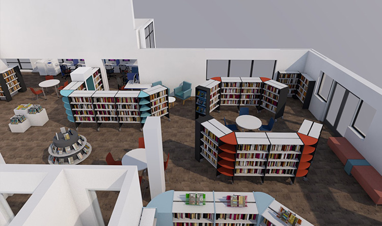 Det stiliga slutresultatet uppvisar en bred färgpalett, flexibla möbler och hyllor och vittnar om ett modernt bibliotek som kan välkomna människor i alla åldrar.