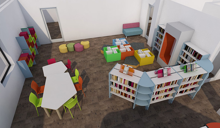 Det fanns ett behov av många olika avdelningar, vilket thedesignconcept ltd. tagit hänsyn till i designupplägget, såsom en vuxenavdelning, en barnavdelning, en IT-avdelning samt flexibla media- och avkopplingsområden.