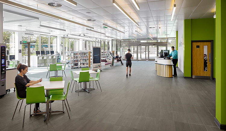 Thedesignconcept ltd. har arbetat nära Live Wire and Walker Simpson Architects för att skapa skräddarsydda möbler och välja specialtyger för att biblioteket ska tillgodose de dementas behov. Byggnaden erbjuder även spa, gym, tennisbanor och simbassäng.
