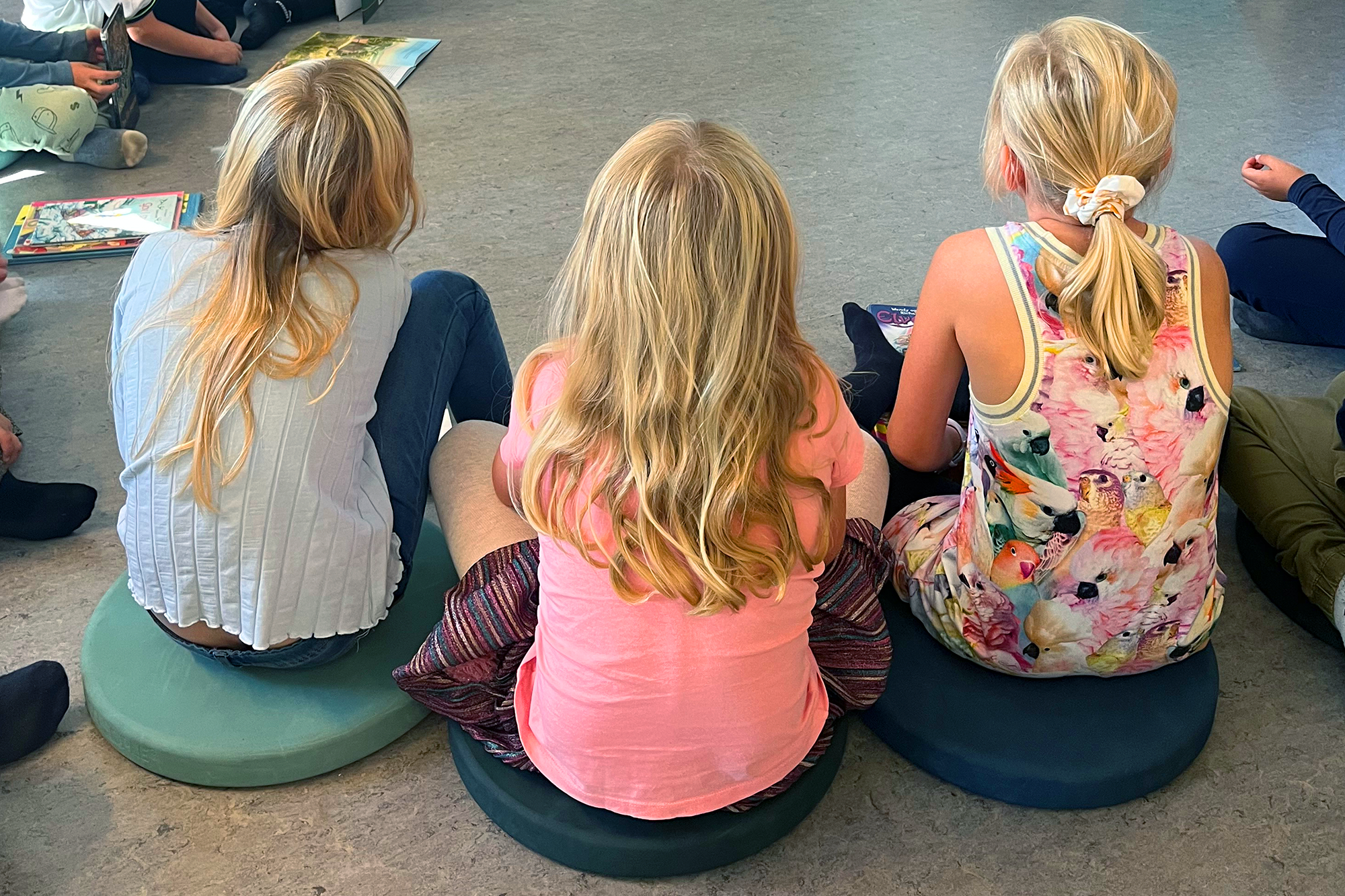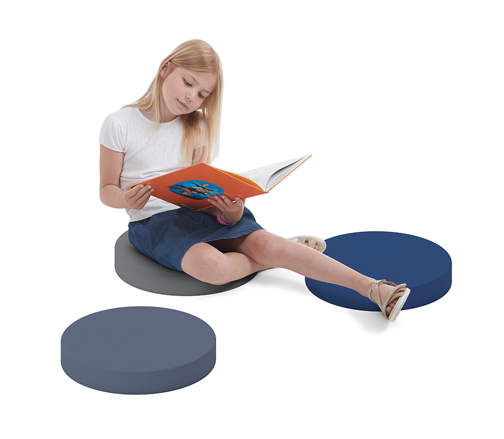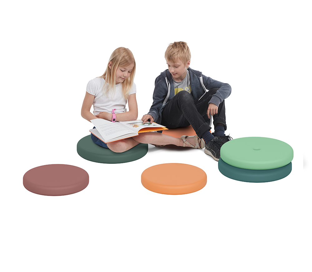 ”Vi är så glada att vi fann dessa fina kuddar. Det solida materialet håller för att barnen sitter på dem och det praktiska hålet i mitten gör att eleverna själva – oavsett ålder – kan lägga tillbaka kudden på ett stativ. Stativet tar inte så mycket plats, vilket är bra när man som vi inte har så mycket plats.”