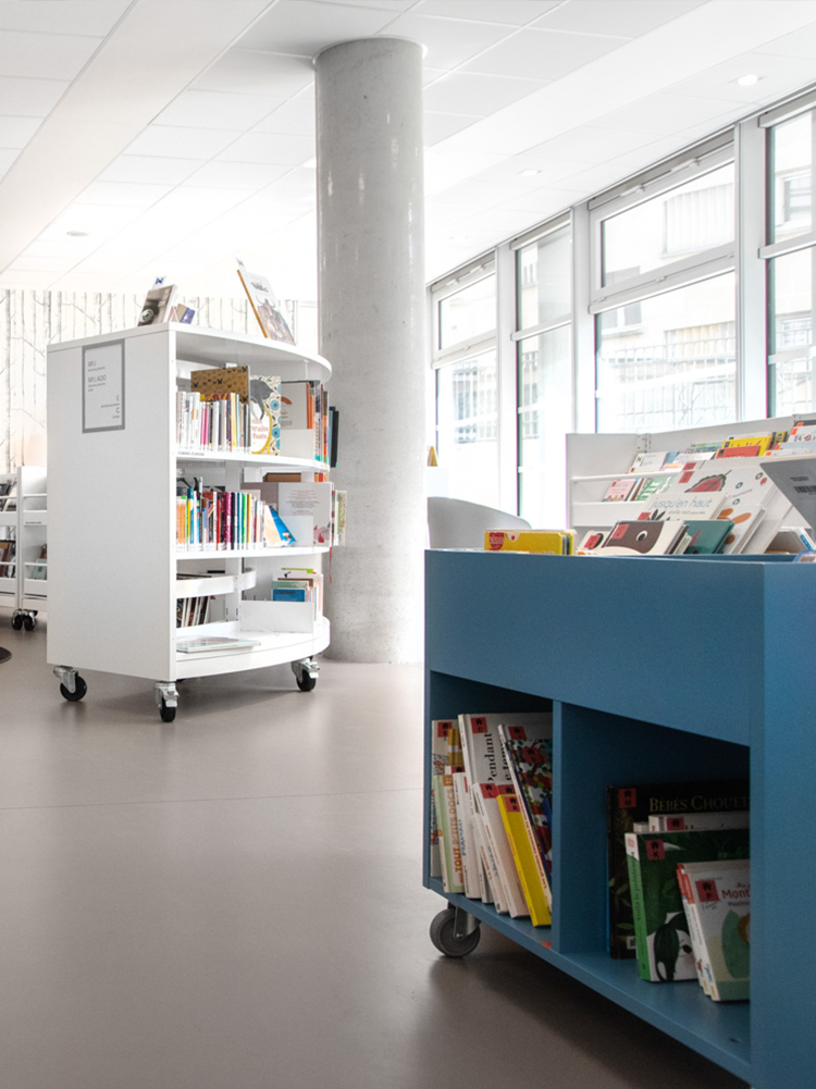Flyttbara möbler finns i många former och olika produkttyper. Använd våra hyllor och exponeringslådor med hjul så kan du inreda och organisera biblioteket precis som du önskar. Lägg till puffar och kuddar som ger extra sittplatser och är lätta att flytta runt. Välj bland många färger och roliga varianter som helt säkert kommer fånga barnens uppmärksamhet.