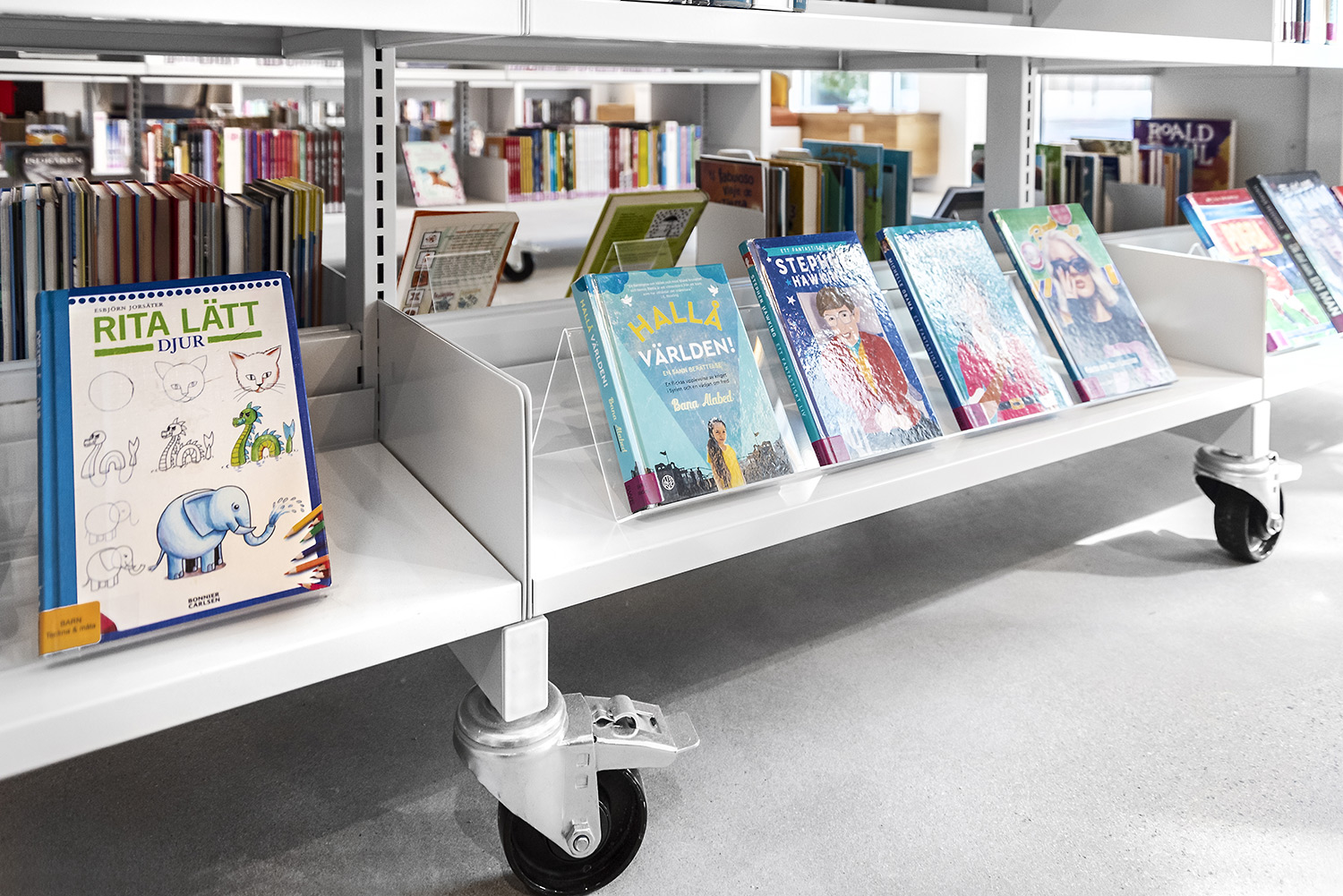 Akrylställ för exponering av alla storlekar av böcker, media, information och litteratur.