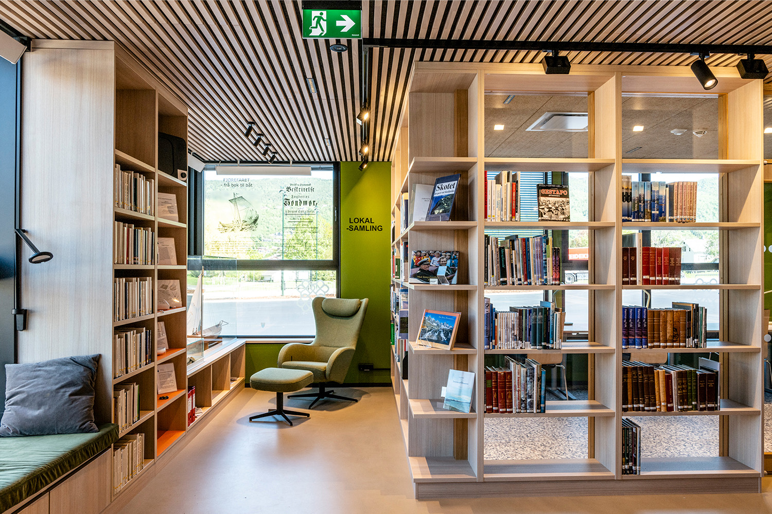 - med ett stort urval av hyllplan (metall eller trä, plana eller lutande, bakkants- eller hängande bokstöd)