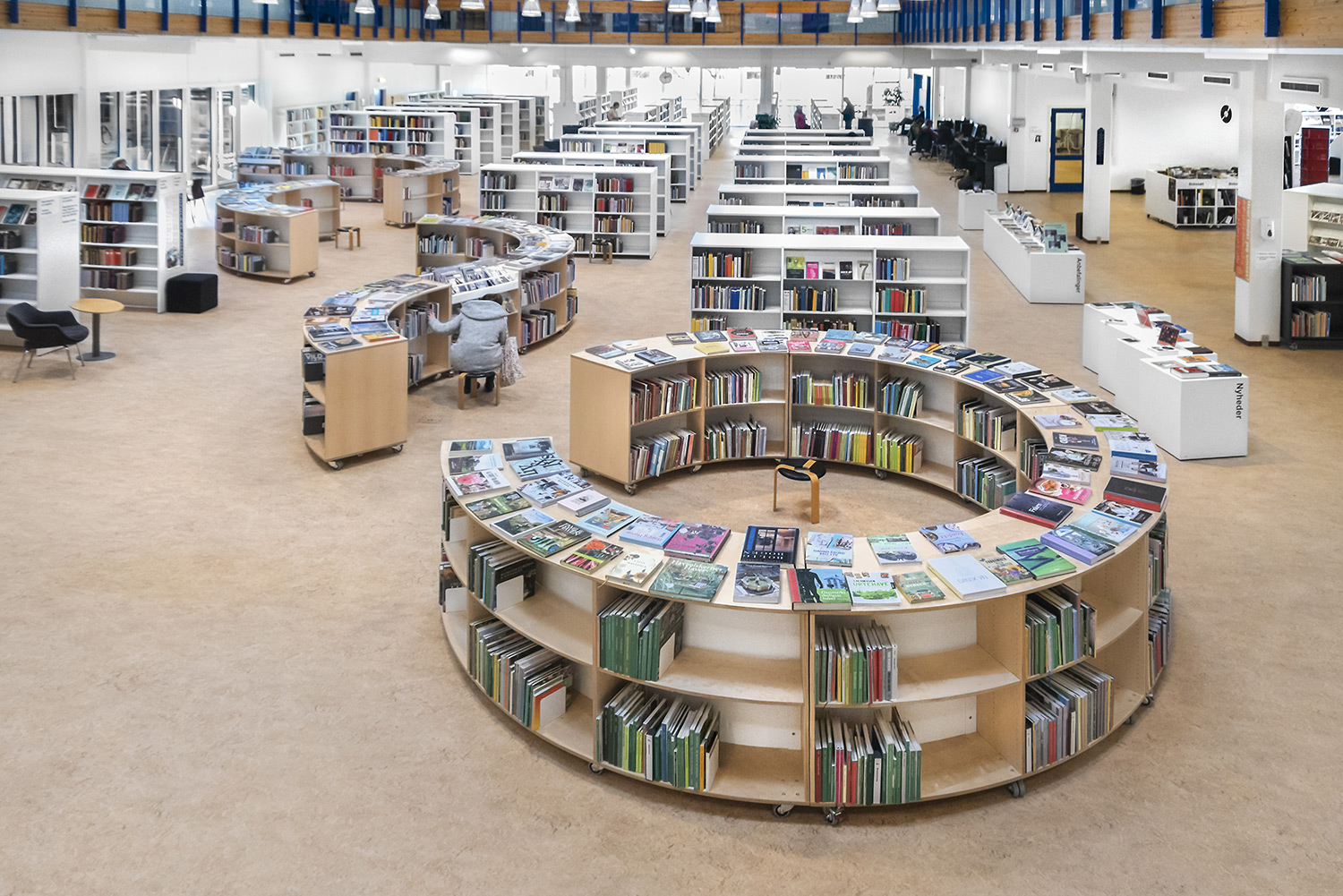 Lingo rund hylla öppnar upp en ny värld av exponering och förvaring av böcker. Skapa små läs- eller specialzoner genom att bygga en nästan fullbordad cirkel, där bibliotekets besökare kan få viss avskildhet, eller skapa öppna vågmönster av runda hyllor genom biblioteket.