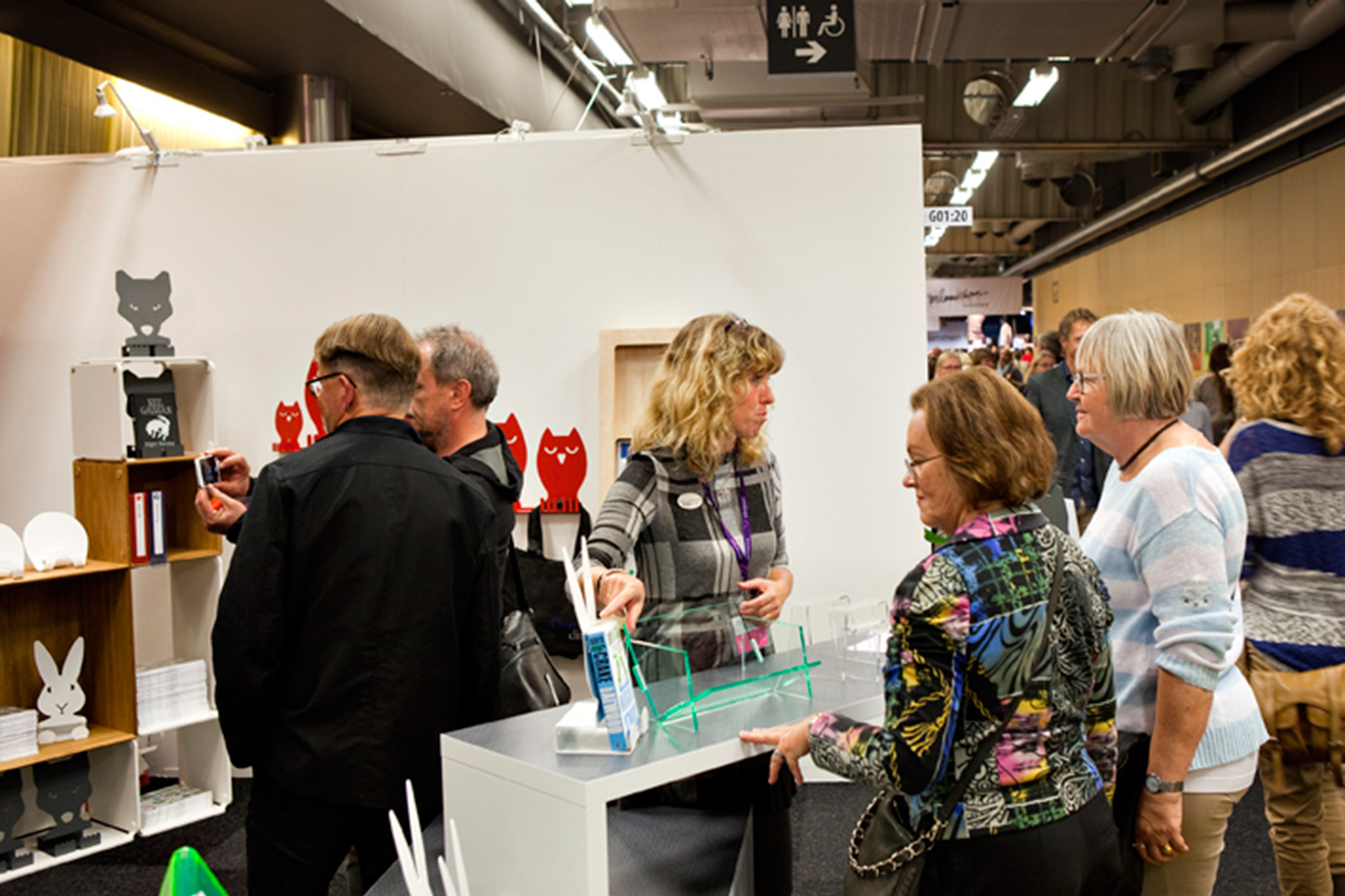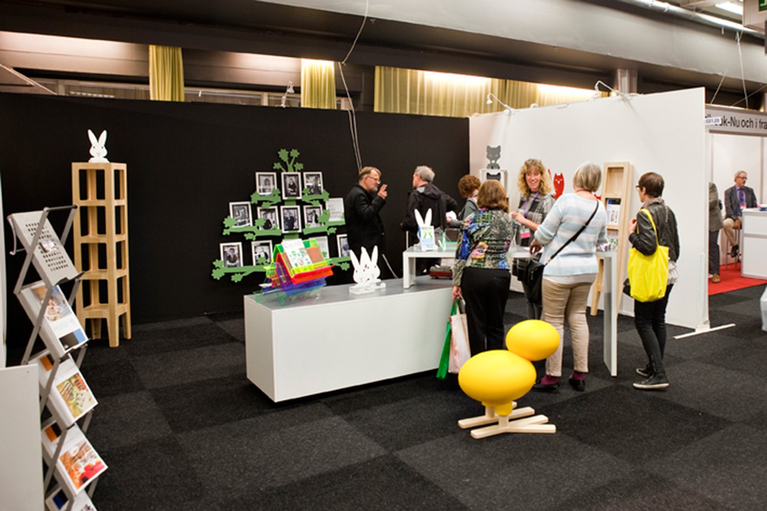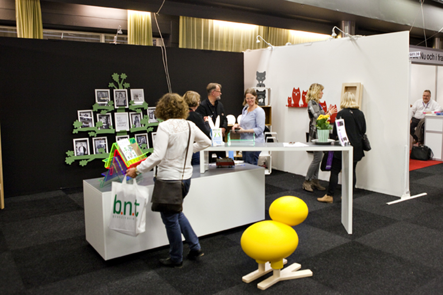 Flera pinfärska nyheter presenterades i montern och våra besökare gavs tillfälle att kommentera och komma med input. Bland annat visades exponeringstorn i klassiskt utförande i björkfaner antingen för fristående placering eller lutad mot vägg. Exponeringslösningen i form av ett grönskande träd på vägg blev helt klart favoriten i vår monter. Härutöver väckte de små smarta exponeringsställen i vit eller transparent akryl samt den lite mer exklusiva bokvaggan i glass look väckte stort intresse och kommer inom kort att presenteras vidare i vår nätbutik.