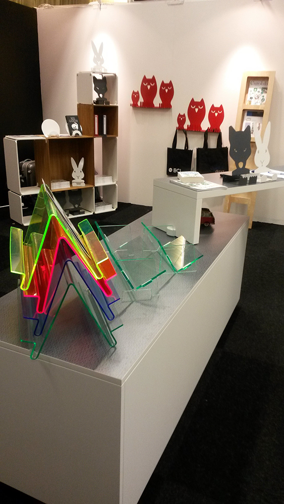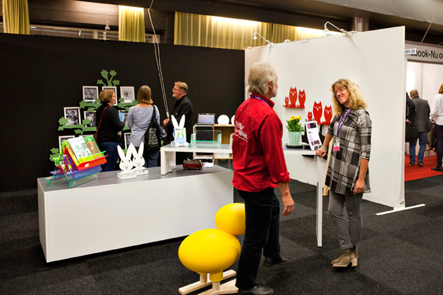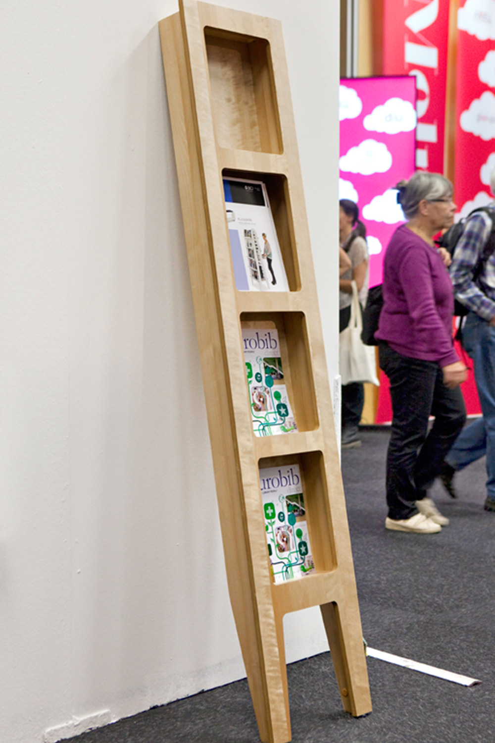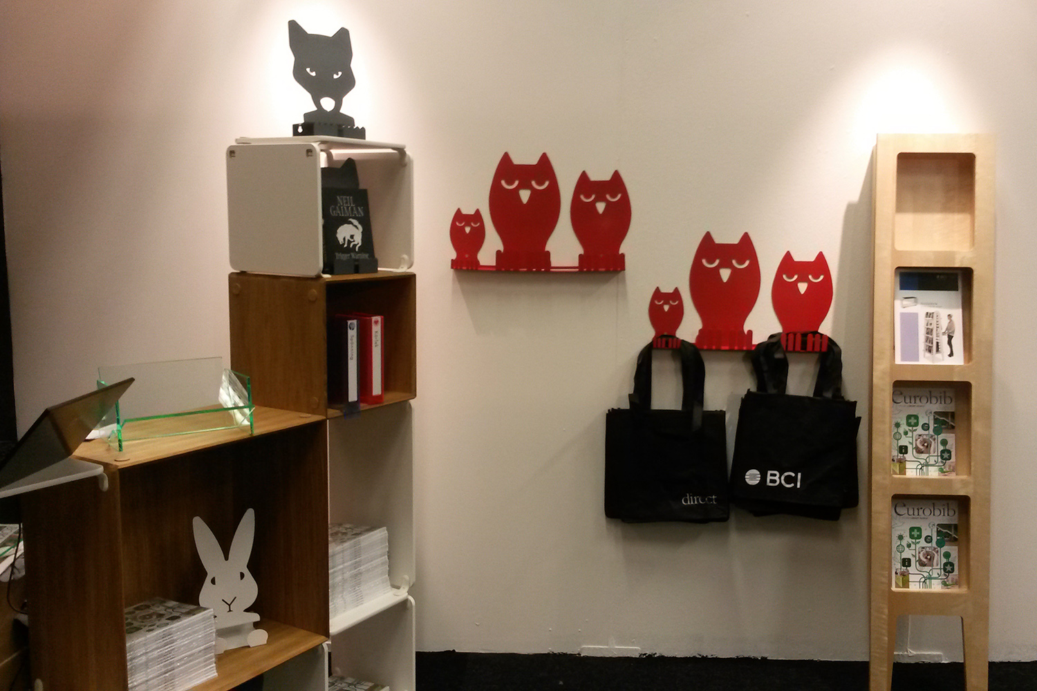 Flera pinfärska nyheter presenterades i montern och våra besökare gavs tillfälle att kommentera och komma med input. Bland annat visades exponeringstorn i klassiskt utförande i björkfaner antingen för fristående placering eller lutad mot vägg. Exponeringslösningen i form av ett grönskande träd på vägg blev helt klart favoriten i vår monter. Härutöver väckte de små smarta exponeringsställen i vit eller transparent akryl samt den lite mer exklusiva bokvaggan i glass look väckte stort intresse och kommer inom kort att presenteras vidare i vår nätbutik.
