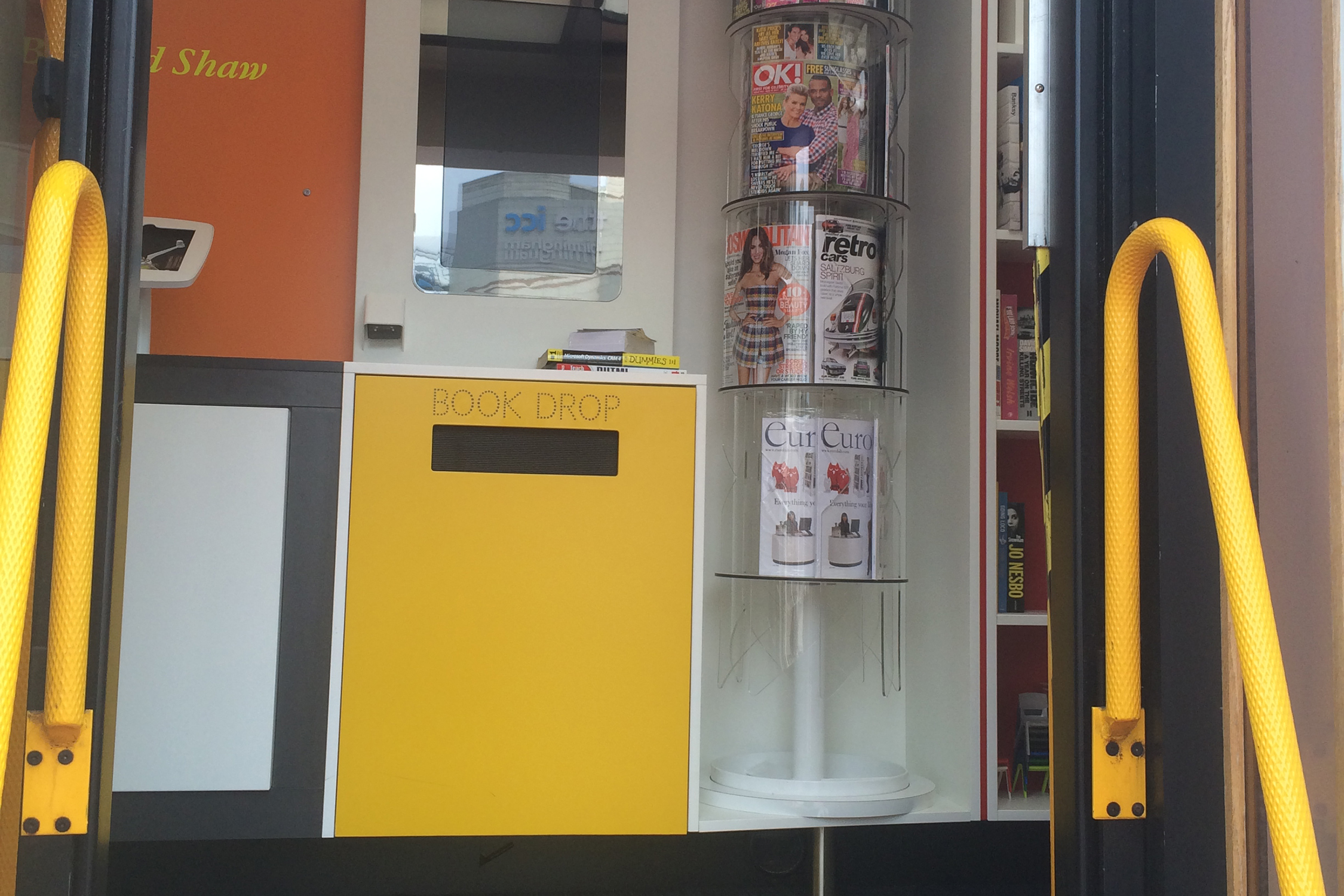 Ombord bjuder vi också på glass! Bokbussen är utrustad med en glassmaskin för att fresta kunder att stiga in.