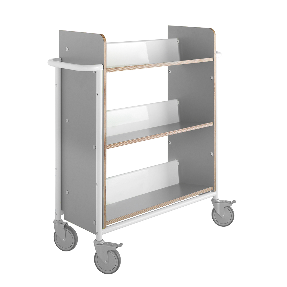 Denna bokvagn kan användas som ett mini-hyllsystem som kan flyttas runt i biblioteket efter var den behövs.