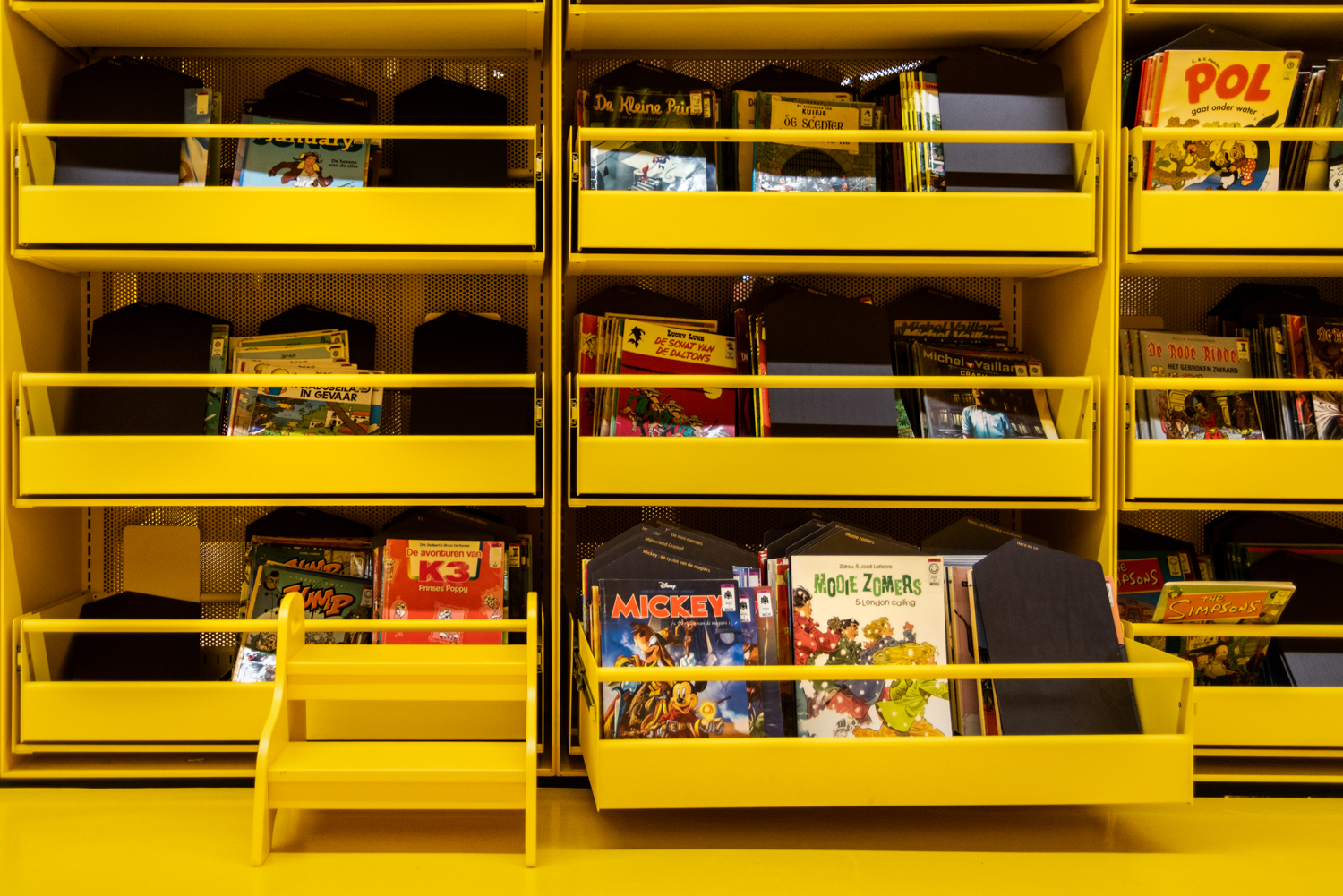 Bibliotekarien Jan Claeys tillfogar: ”Biblioteket är dynamiskt, lekfullt och stimulerar den självständiga och rådiga besökaren tack vara det optimala användandet av informationteknologi. Ett samlat koncept som fokuserar på upplevelse och öppenhet.”