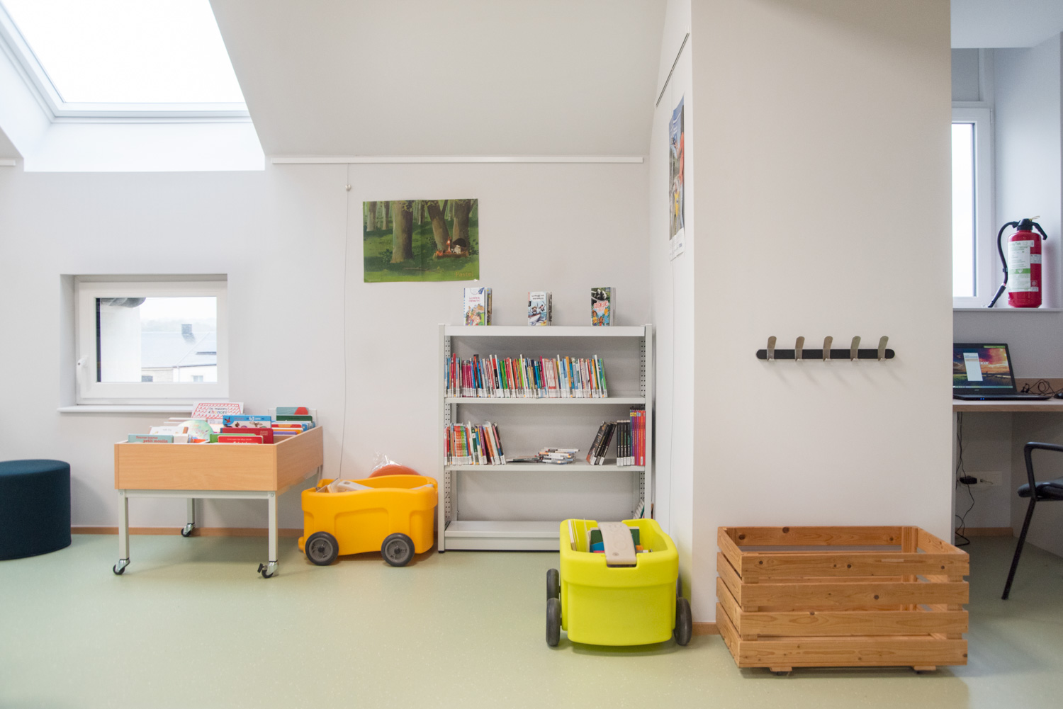 Mitt i Gaume-skogarna, söder om de belgiska Ardennerna, finns detta bibliotek i en K-märkt gammal skolbyggnad.