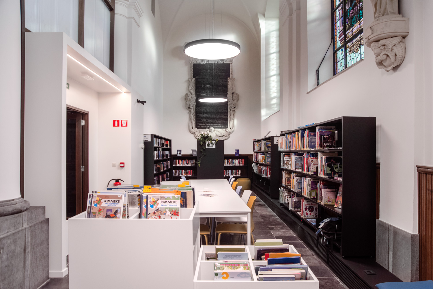 En del av kyrkan i Kallo, nära Antwerpens hamn, har förvandlats till en biblioteksfilial för kommunen Beveren.