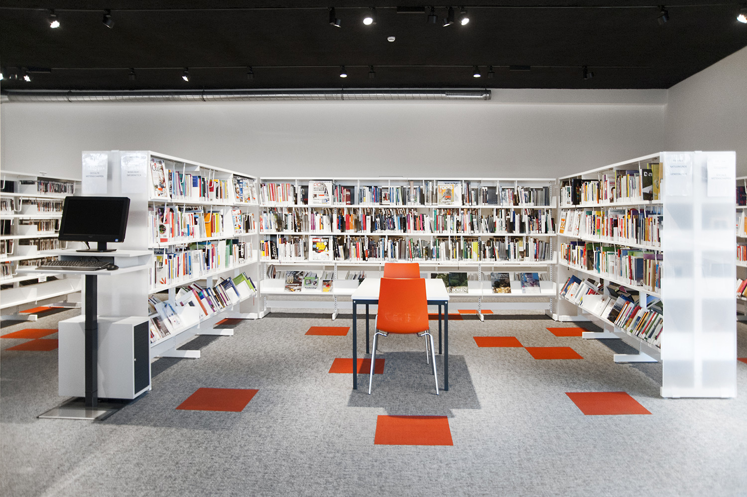 Det nya kulturhuset, De Warande, tillhandahåller teater, turistinformation och bibliotek. Byggnaden ligger inbäddad mellan Warandeparken och den livliga stadskärnan. I samarbete med kommunens arkitekt, Landmark konsultbyrå och den erfarne bibliotekarien Herman de Meulemeester, designande vi ett bibliotek som kan erbjuda biblioteksbesökare en utvald, attraktiv samling exponerad på ett ljust och tydligt sätt.