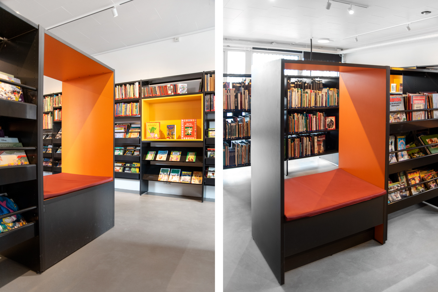 ”Eleverna har blivit mycket gladare i sitt bibliotek och det används till fler olika aktiviteter. Arkitekterna från Lammhults Biblioteksdesign kom med spännande och bra förslag på hur utrymmena bäst skulle utnyttjas. Dessutom visade de hur färgskalan i övriga skolan kunde fortsätta in i skolbiblioteket. Med den nya inredningen verkar vårt bibliotek så mycket större”, berättar Christa.