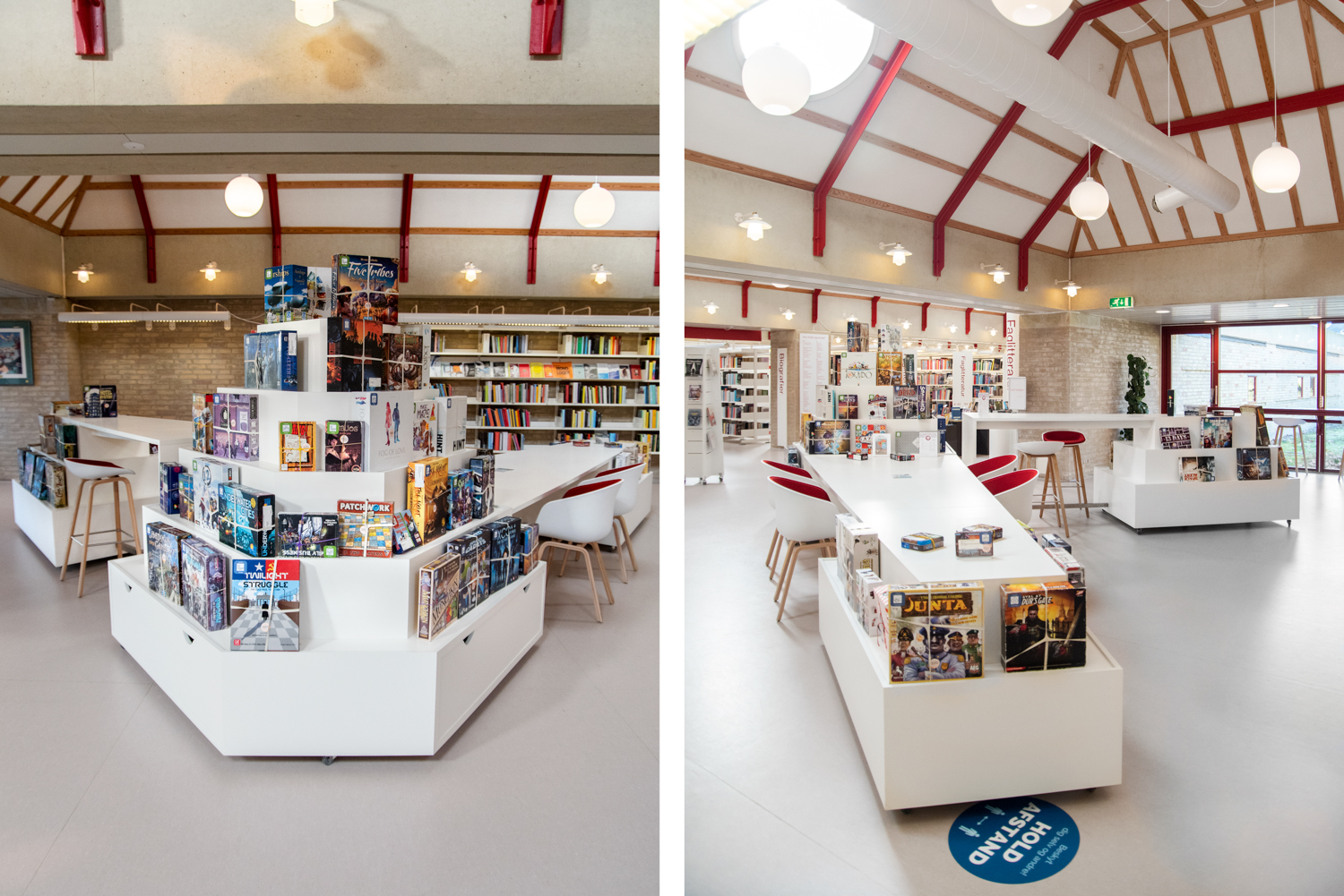 ”Våra något röriga idéer har förvandlats till konkreta och spännande initiativ. Vi har lyckats skapa ett bibliotek som är ett enda stort rum med många olika områden och zoner som ger utrymme för olika sorters besökare att trivas. Vår önskan var att presentera brädspel och konst på ett nytt och läckert sätt – den önskan har infriats,” säger Trine.