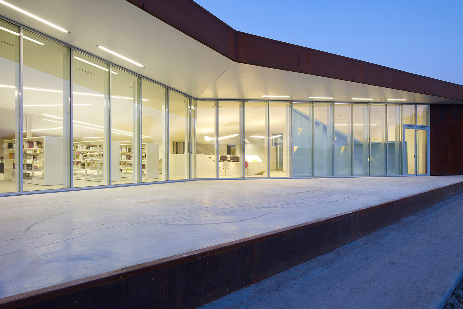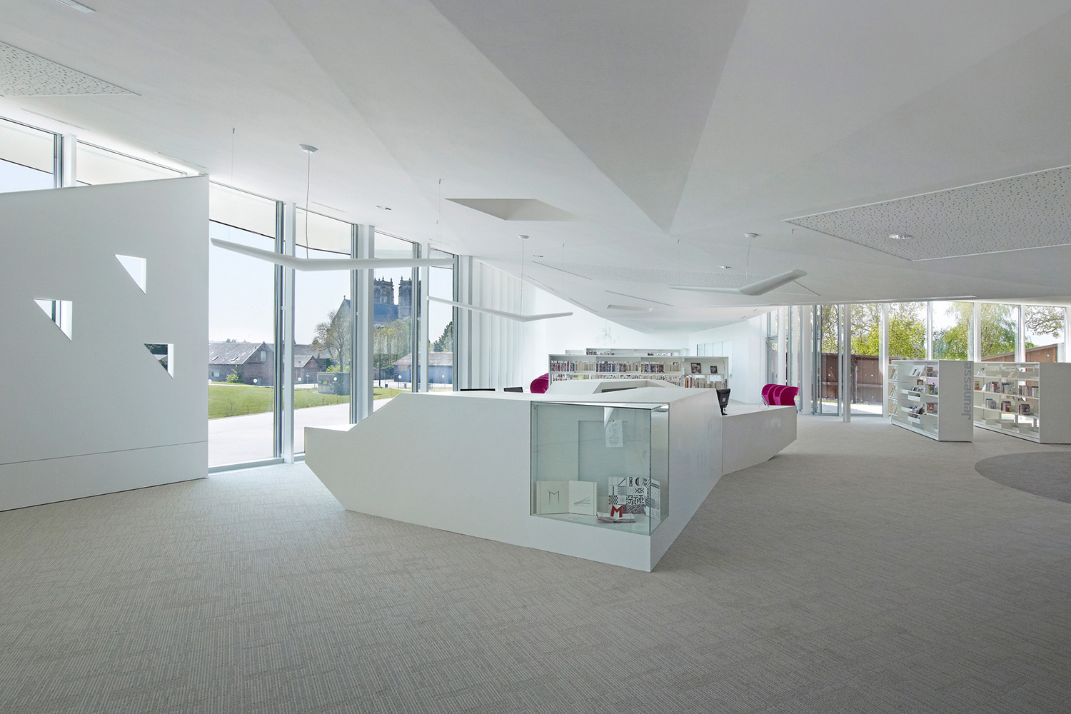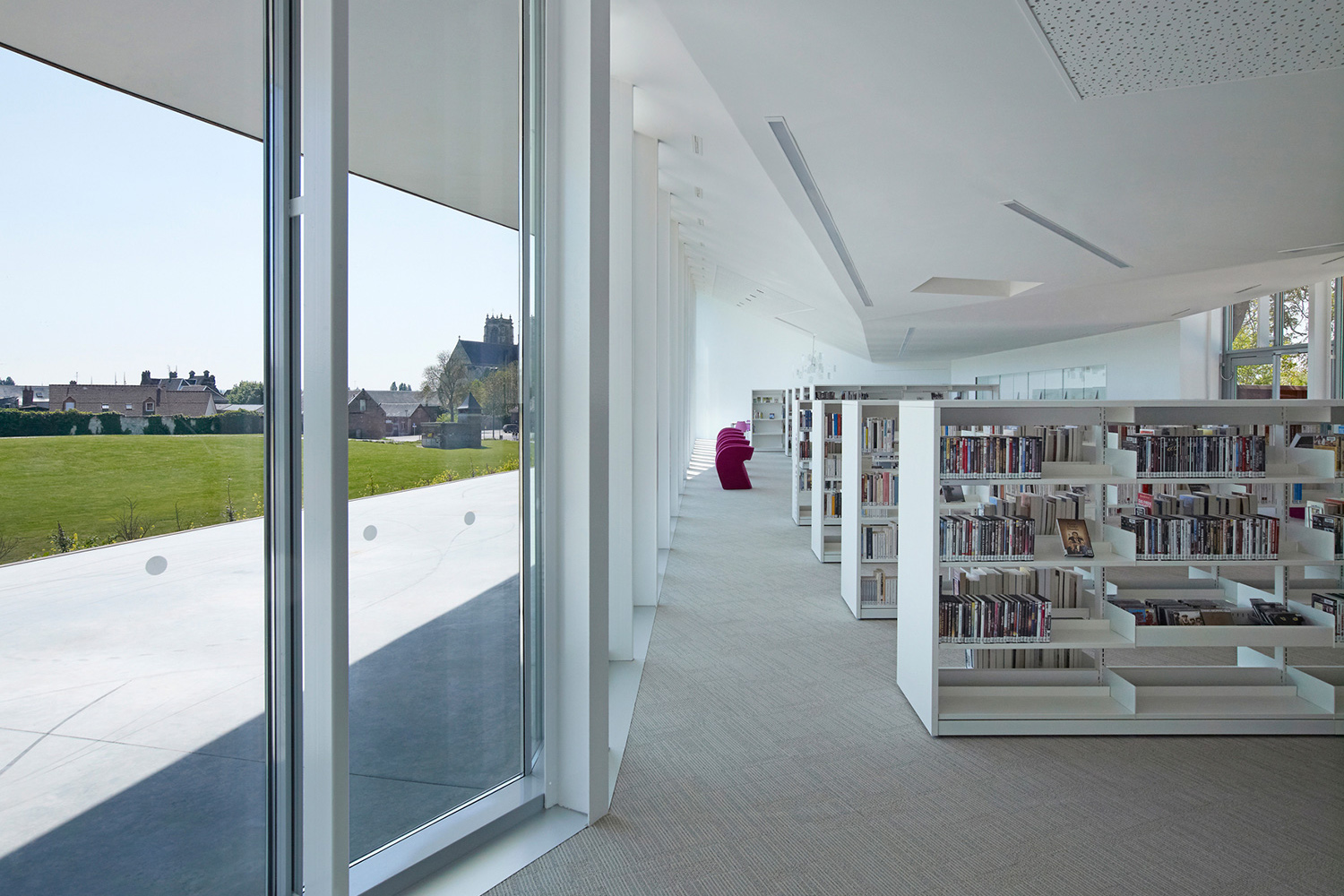 Det inneslutna klostret i Corbie är omringat av en stenmur från 1700-talet. Placerat på kanten av ett brant stup i stenmuren har det nya mediebiblioteket utsikt över den vackra staden och det storslagna gotiska klostret. En byggnad, en skulptur eller en reflexion av det omgivande landskapet – mediebiblioteket i Val de Somme är allt på en gång.