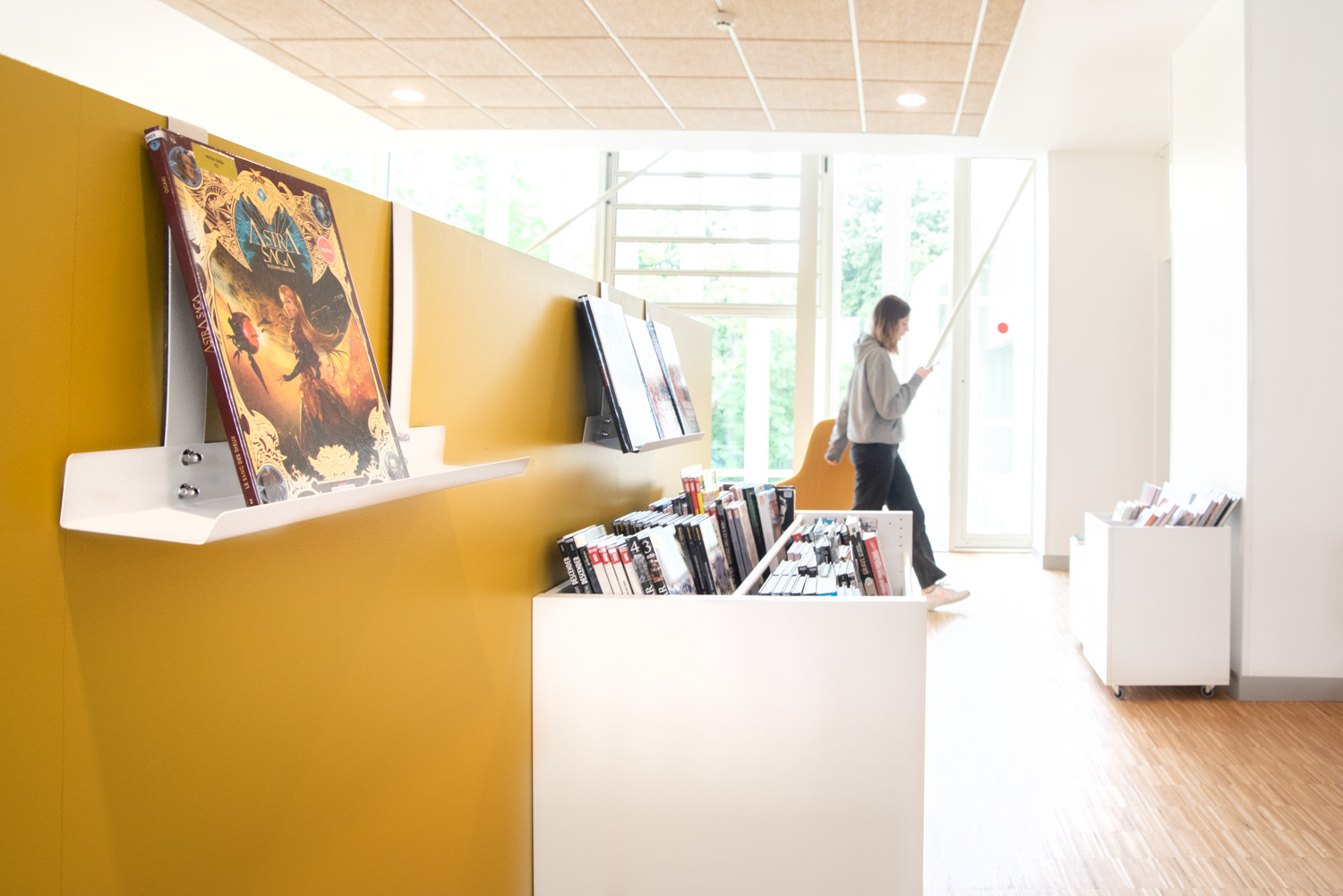 De nya utrymmena omfattar ett auditorium med 100 platser, arbetsområden och en avdelning för tryckta medier, brädspel och videospel.