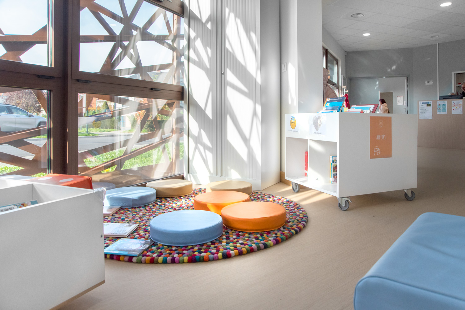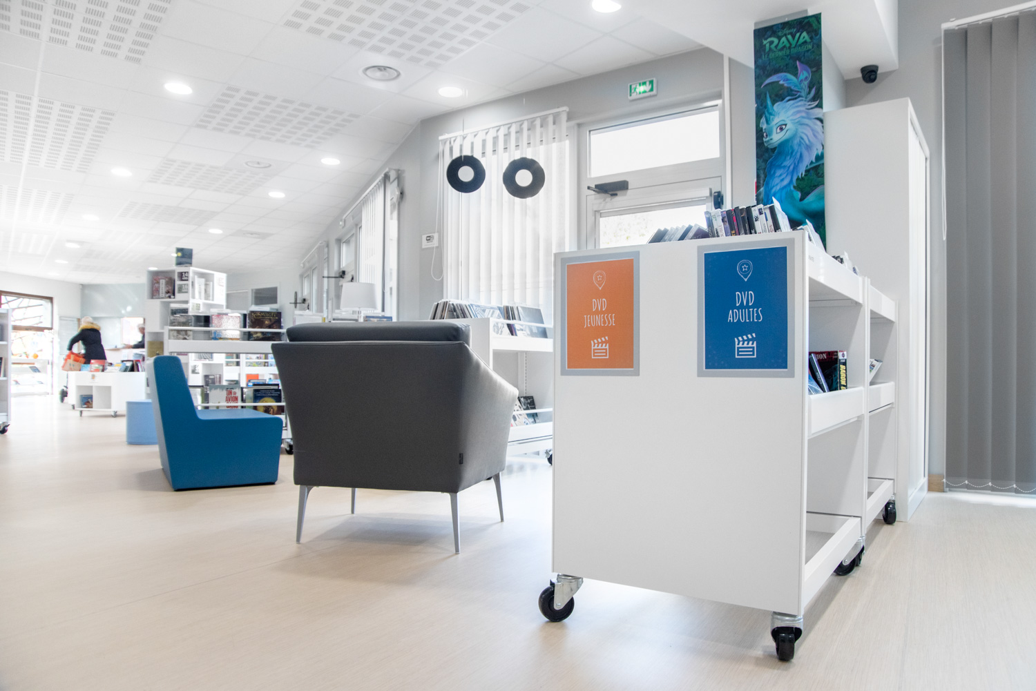 Biblioteket hade ett nära samarbete med projektledare och inredningsarkitekter från BC Intérieur och UGAP (fransk statlig inköpsorganisation; övers. anm.) för att finna rätt biblioteksmöbler och för inredningen som helhet.