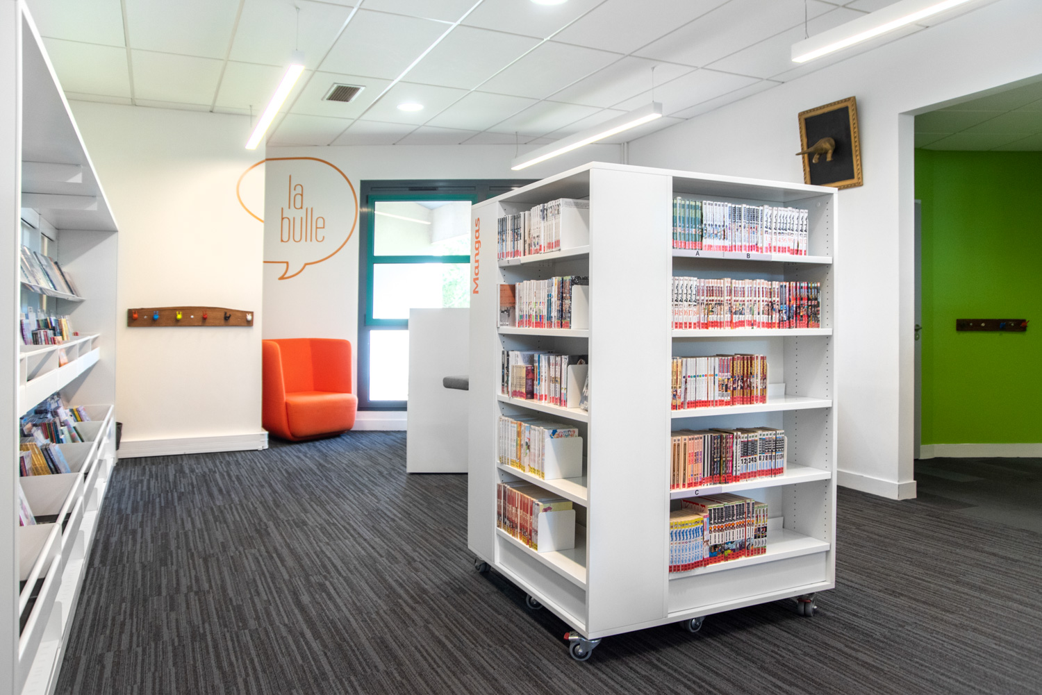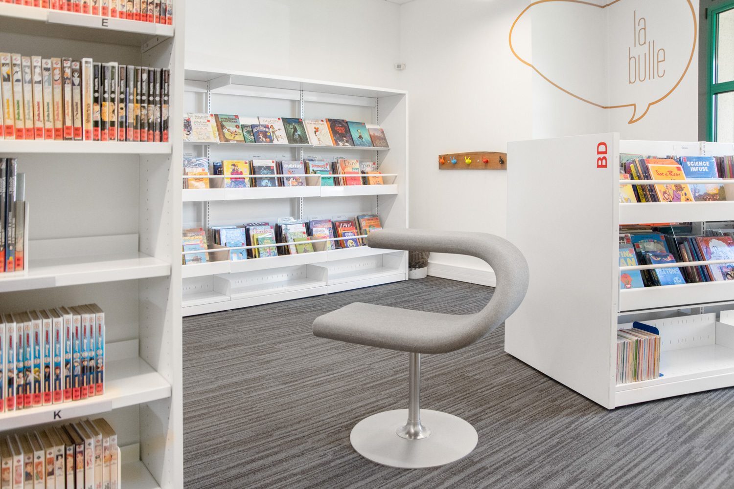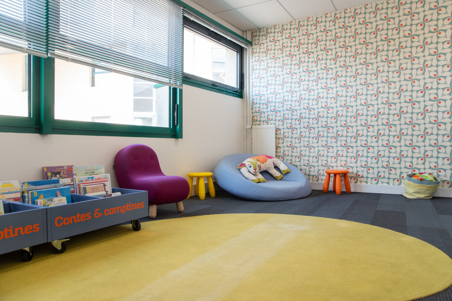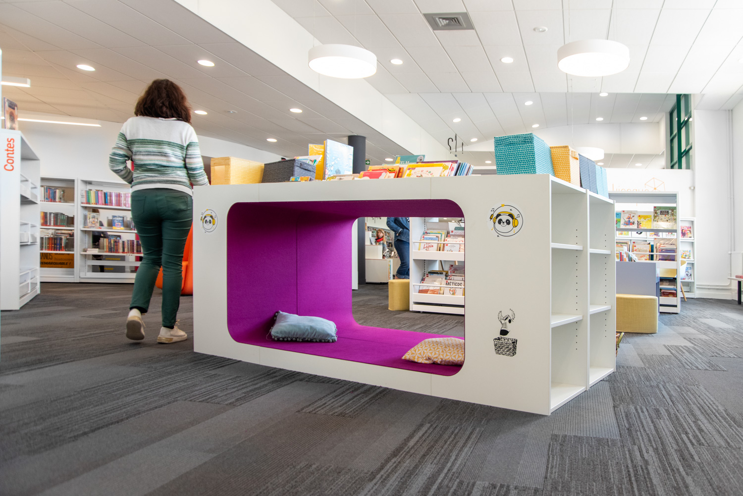 En gungstol för ett nytt vintageområde, en Cocoon-grotta vid ingången till småbarnshörnan och två stora kaniner som tålmodigt väntar på tonåringarna. En gedigen samling i detta vackra, helt renoverade utrymme.