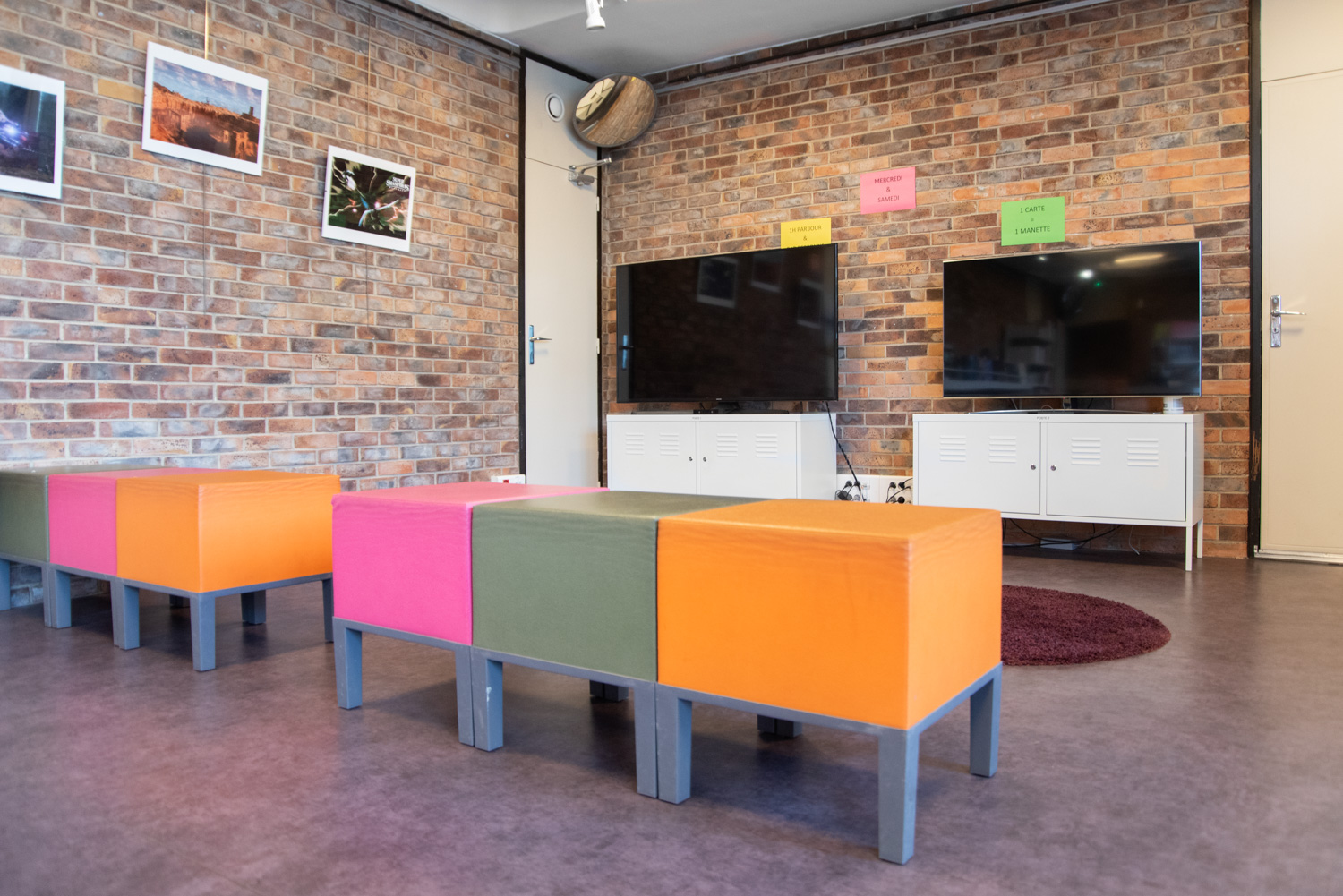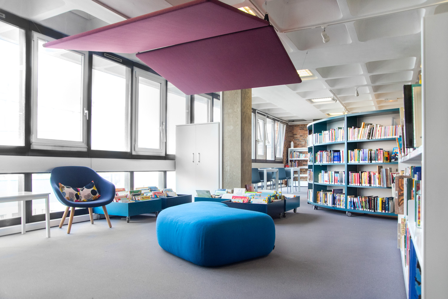 Man har också arbetat med utseendet och funktionaliteten hos de utvalda biblioteksmöblerna, till exempel genom att integrera runda hyllor och minska de ursprungliga hyllornas höjd.