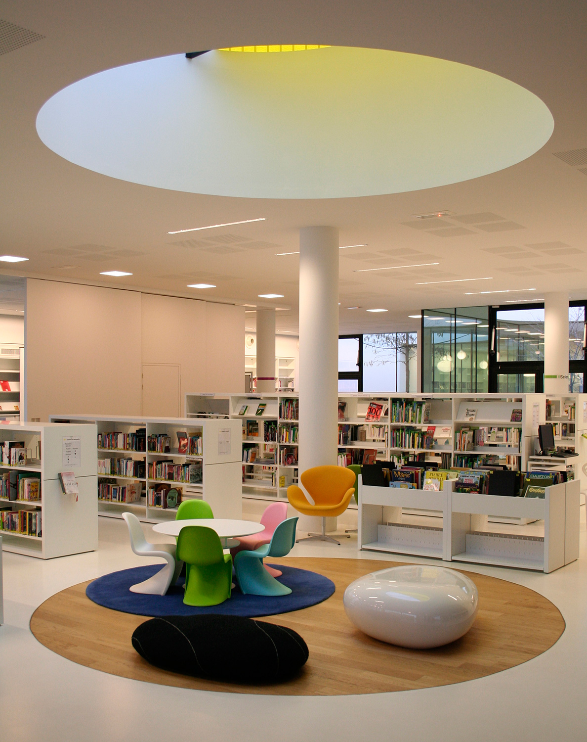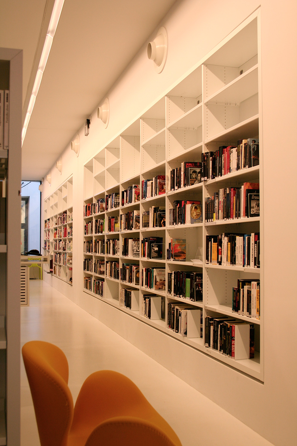 Eftersom byggnaden ligger i en sluttning har arkitekterna varit tvungna att göra byggnadens exteriör transparent med stora glaspartier som låter ljuset skina in. Bibliotekets interiör är i första hand vit med en linje gjord av ekträ på golvet genom hela biblioteket. Endast sittplatserna och några mattor ger byggnaden färg.