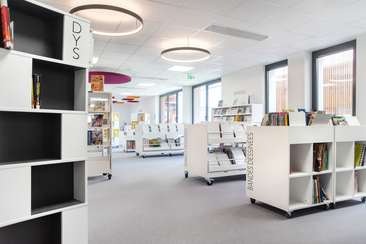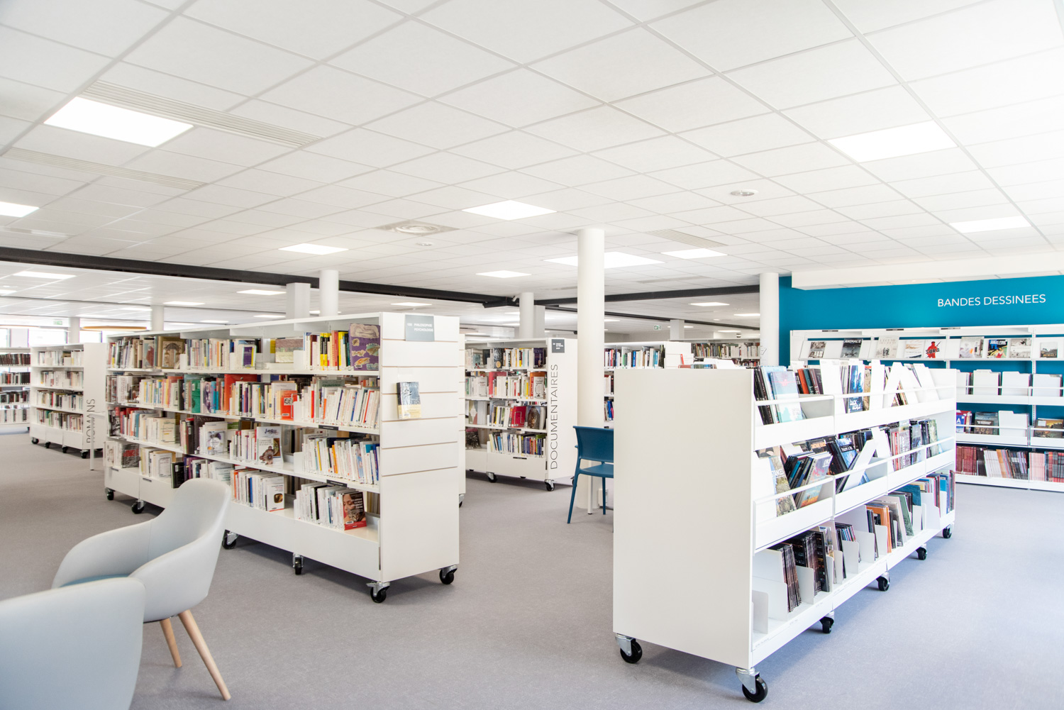 Det 1700 m² stora mediateket Paul Eluard i Vierzon har totalrenoverats och byggts ut.