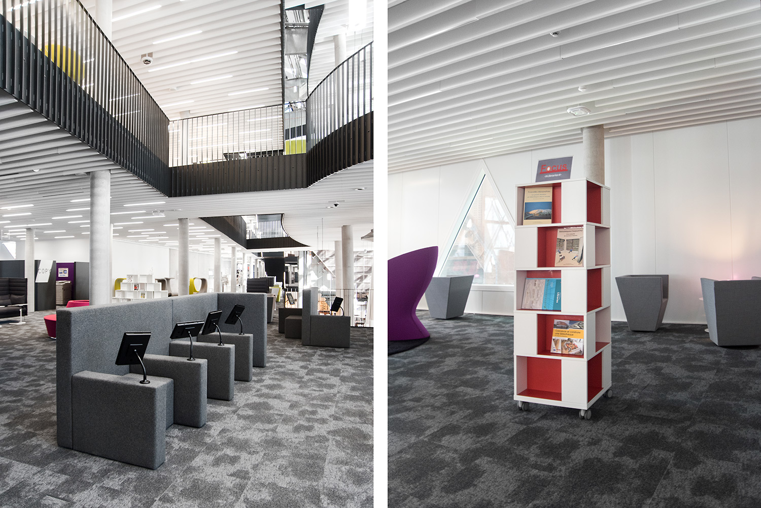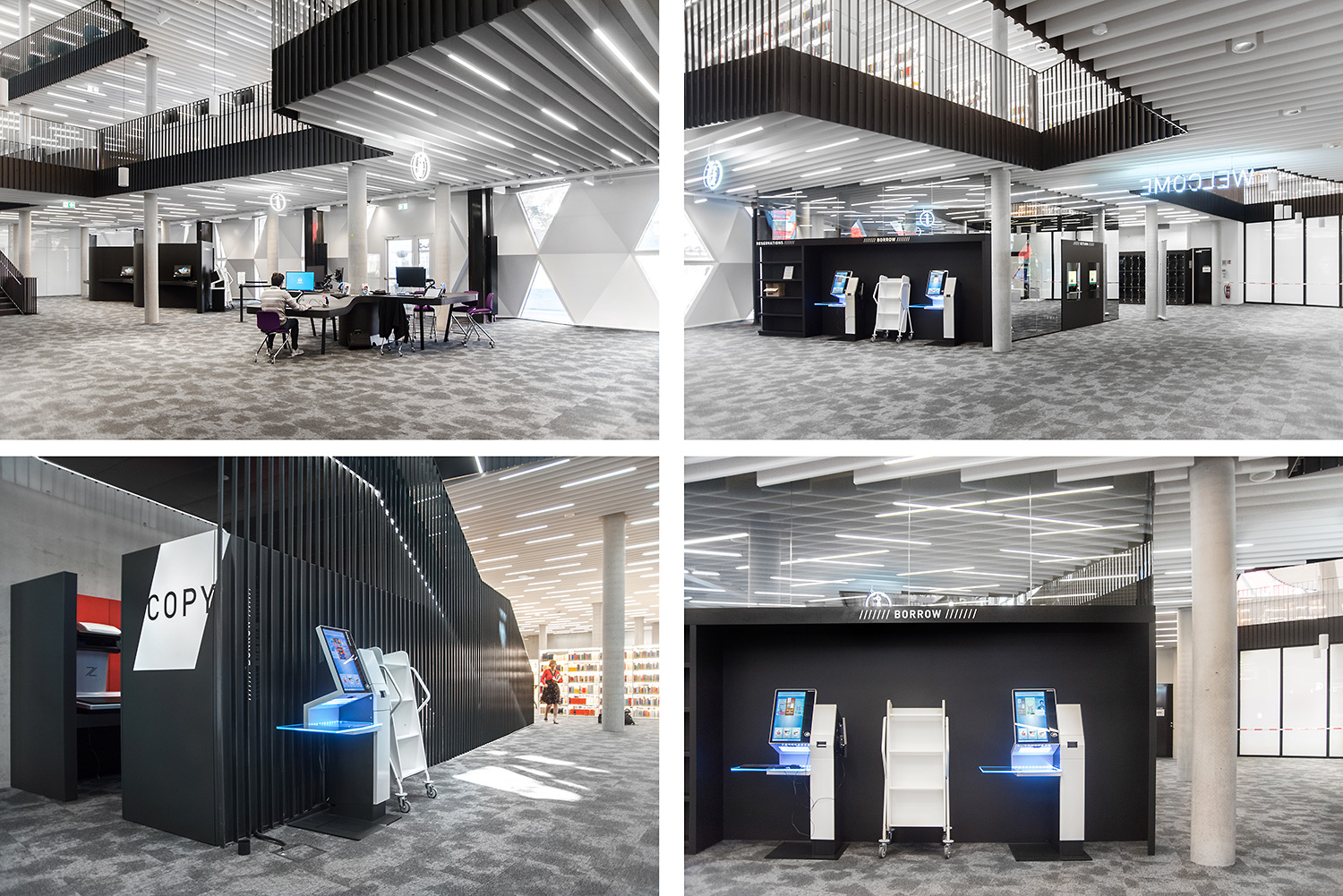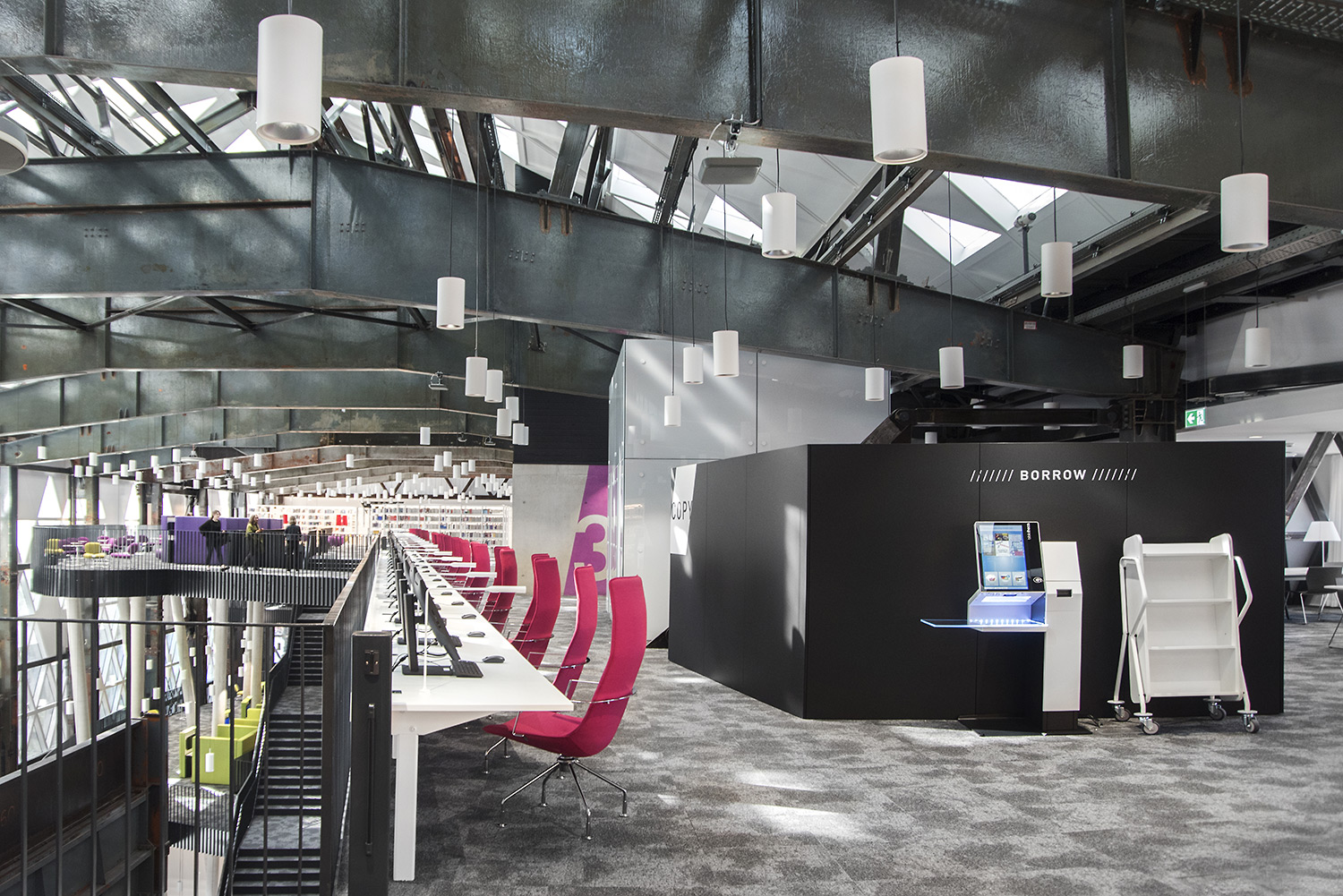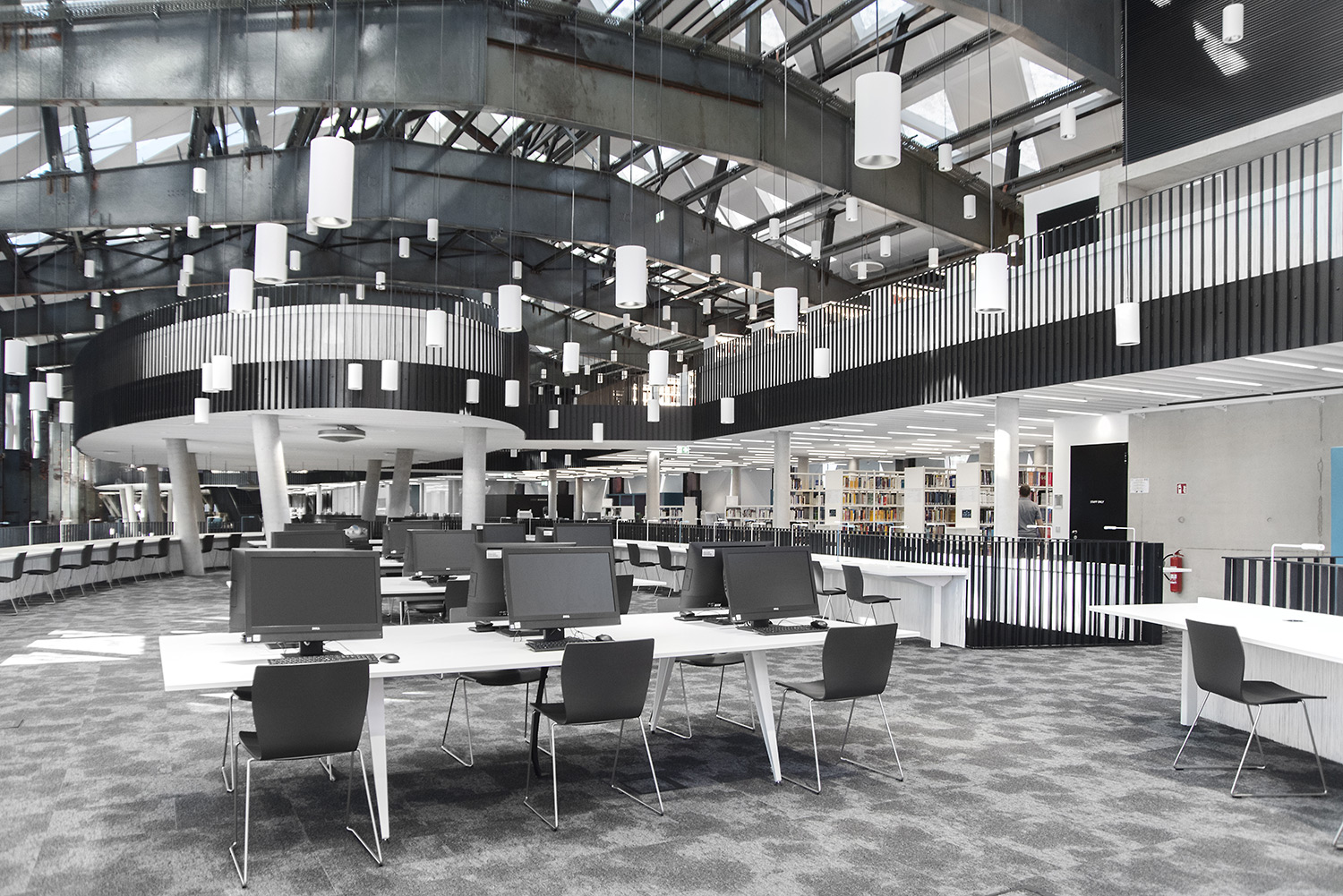 Den enastående arkitekturen skapar tillsammans med möbler av hög kvalitet en attraktiv och flexibel inramning som gör det vetenskapliga biblioteket till en lustfylld plats att träffas, arbeta och dela kunskap.