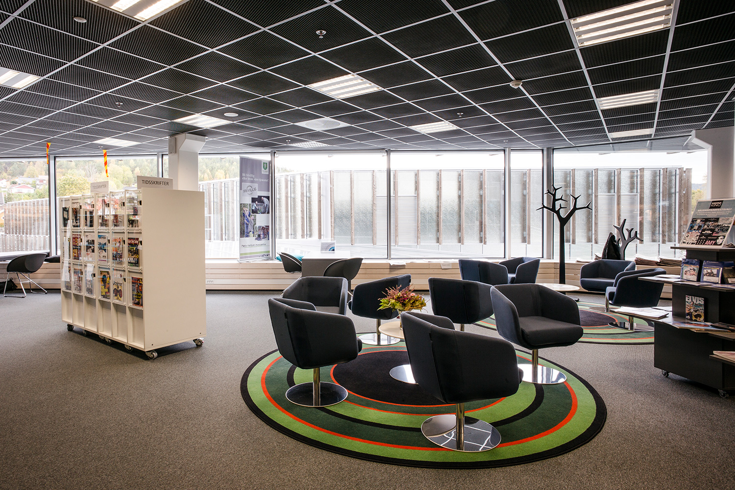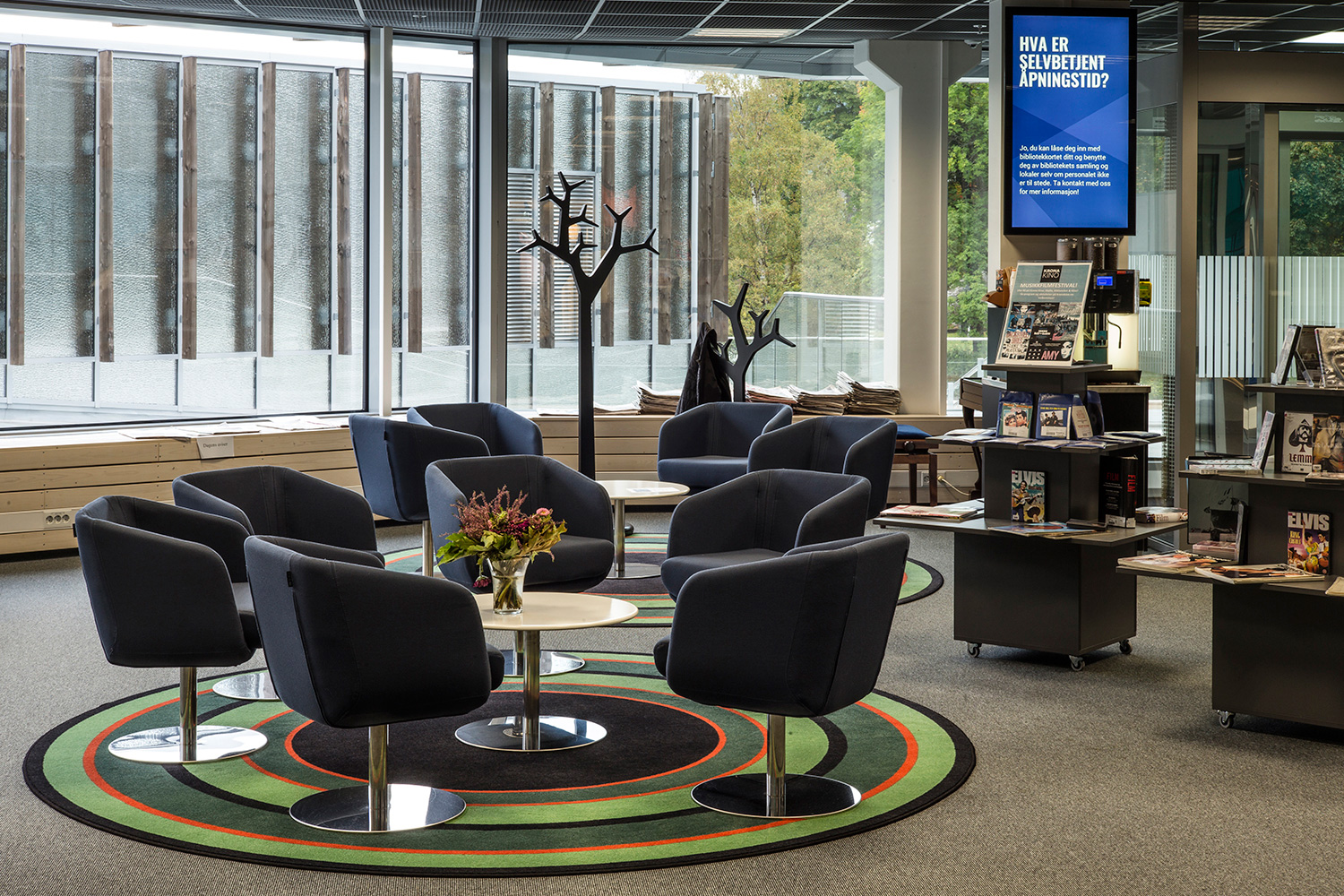 Kongsberg är en stad som ligger i framkanten vad det gäller tekniska landvinningar. Detta återspeglas även i stadens nya bibliotek som framgångsrikt kombinerat det senaste inom teknik och interaktivitet med den mer traditionella inredning som vi ofta förknippar med bibliotek.
