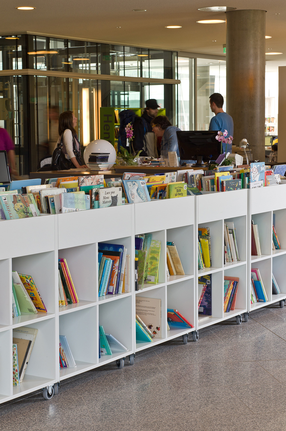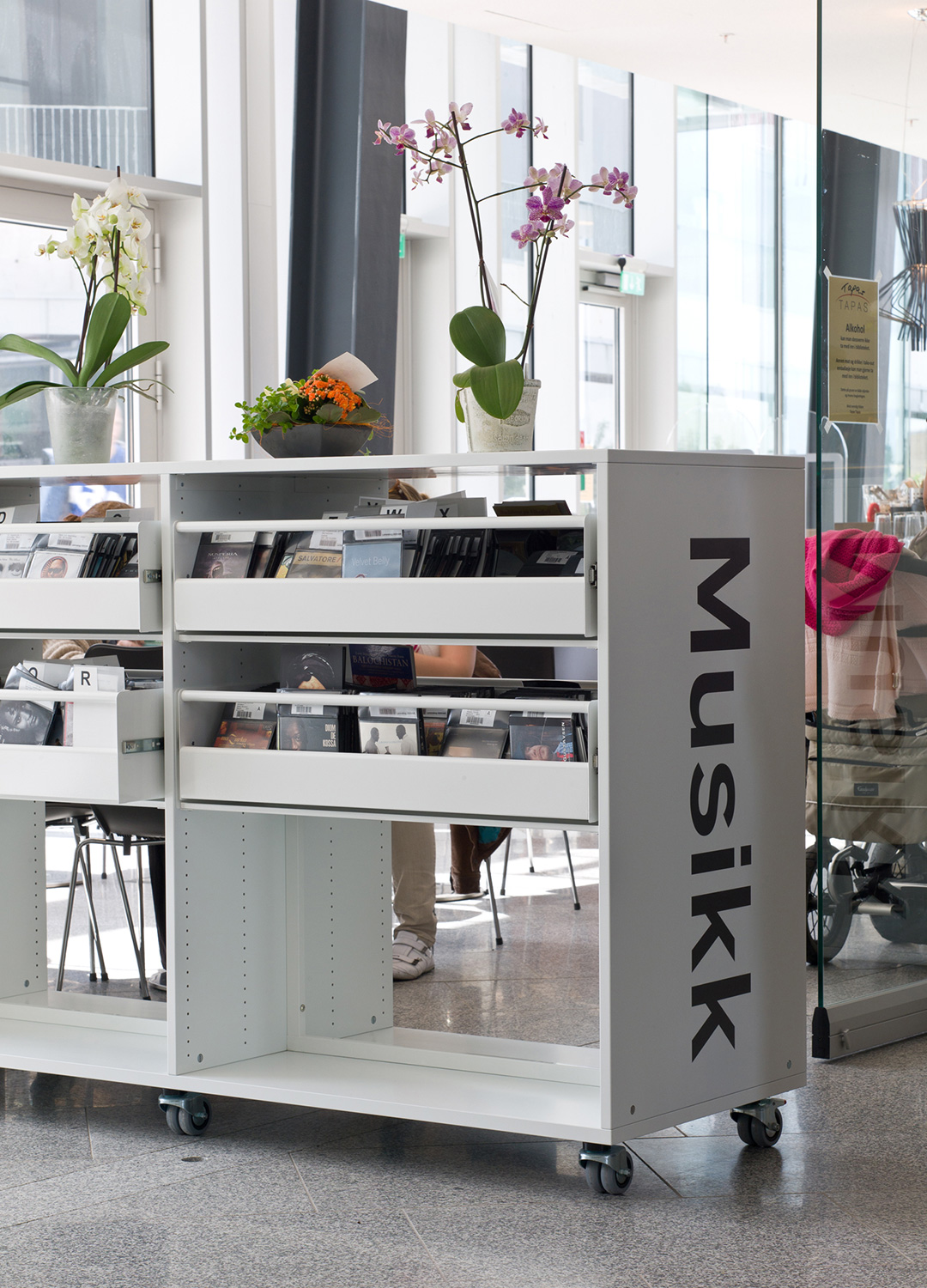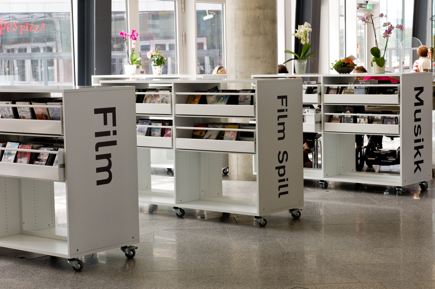 Arkitekterna utmanades nämligen av bibliotekschefen Berit Bjørkild att designa hennes drömhylla. Missionen var att designa ett hyllsystem med hyllplan som kunde ”sälja” böckerna, inspirerad av kommerciella bokhandlare. Specialdesignade hyllor, belysning och unika inredningslösningar skulle vara med att frontexponera böcker på det mest optimala sättet. De specialdesignade hyllorna lutar anigen bakåt, så man kan frontexponera böckerna utan att de ramlar av.
