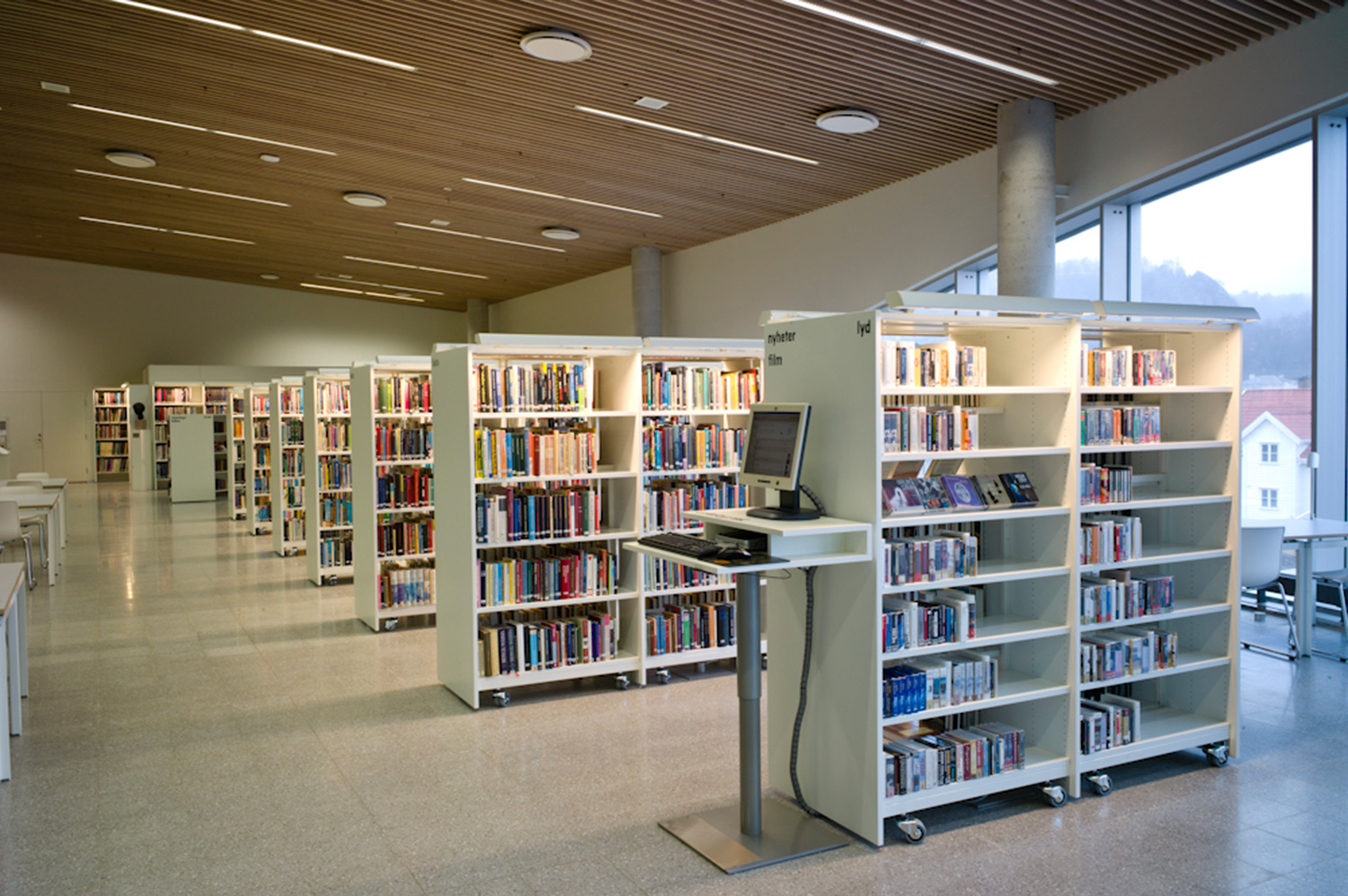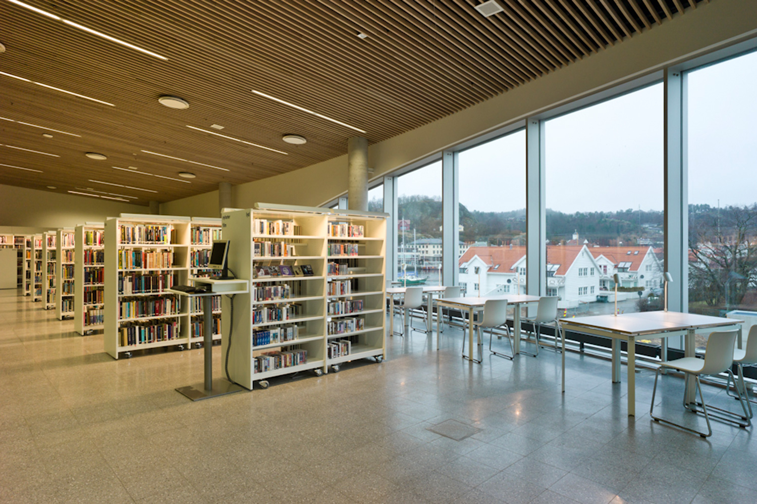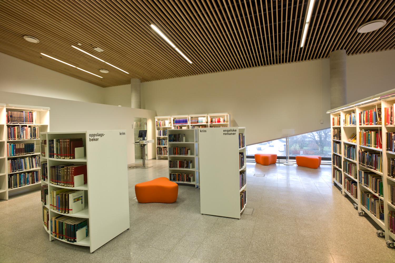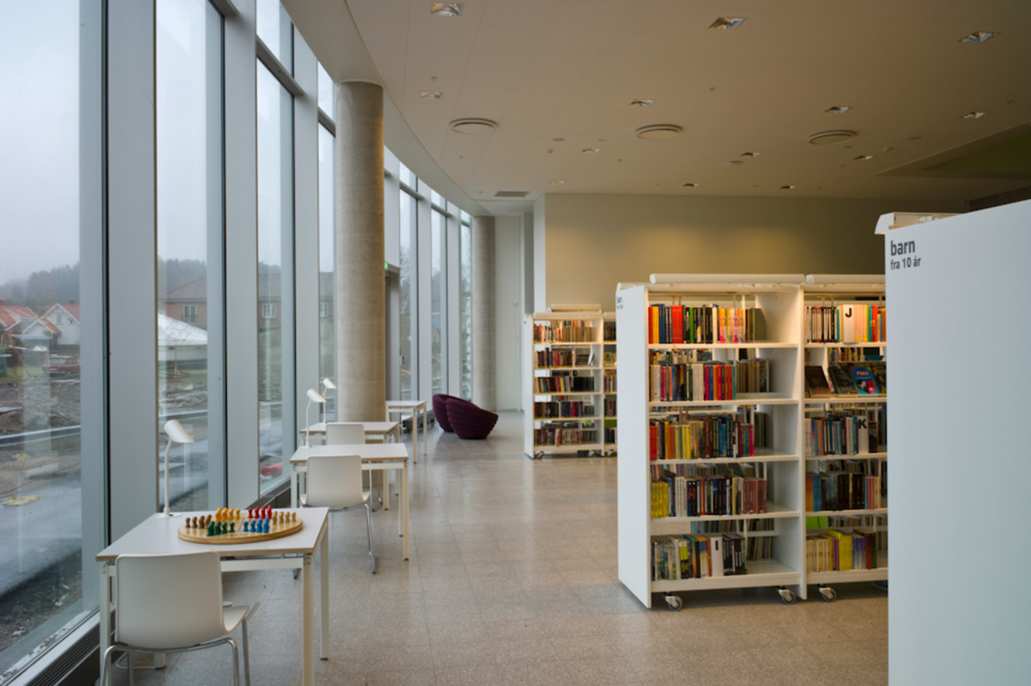 Kulturcentret i den bildsköna staden Mandal kallas ”Buen” (=bågen). Vi konsulterades på ett tidigt stadium i projektet för vår kunskap om biblioteksplanering. En av de viktiga uppgifterna var att bibehålla en dialog med arkitekterna hos 3XN genom hela processen, vilket vi gjorde.