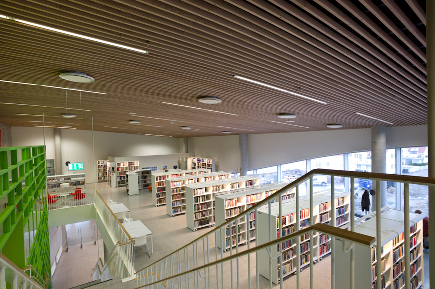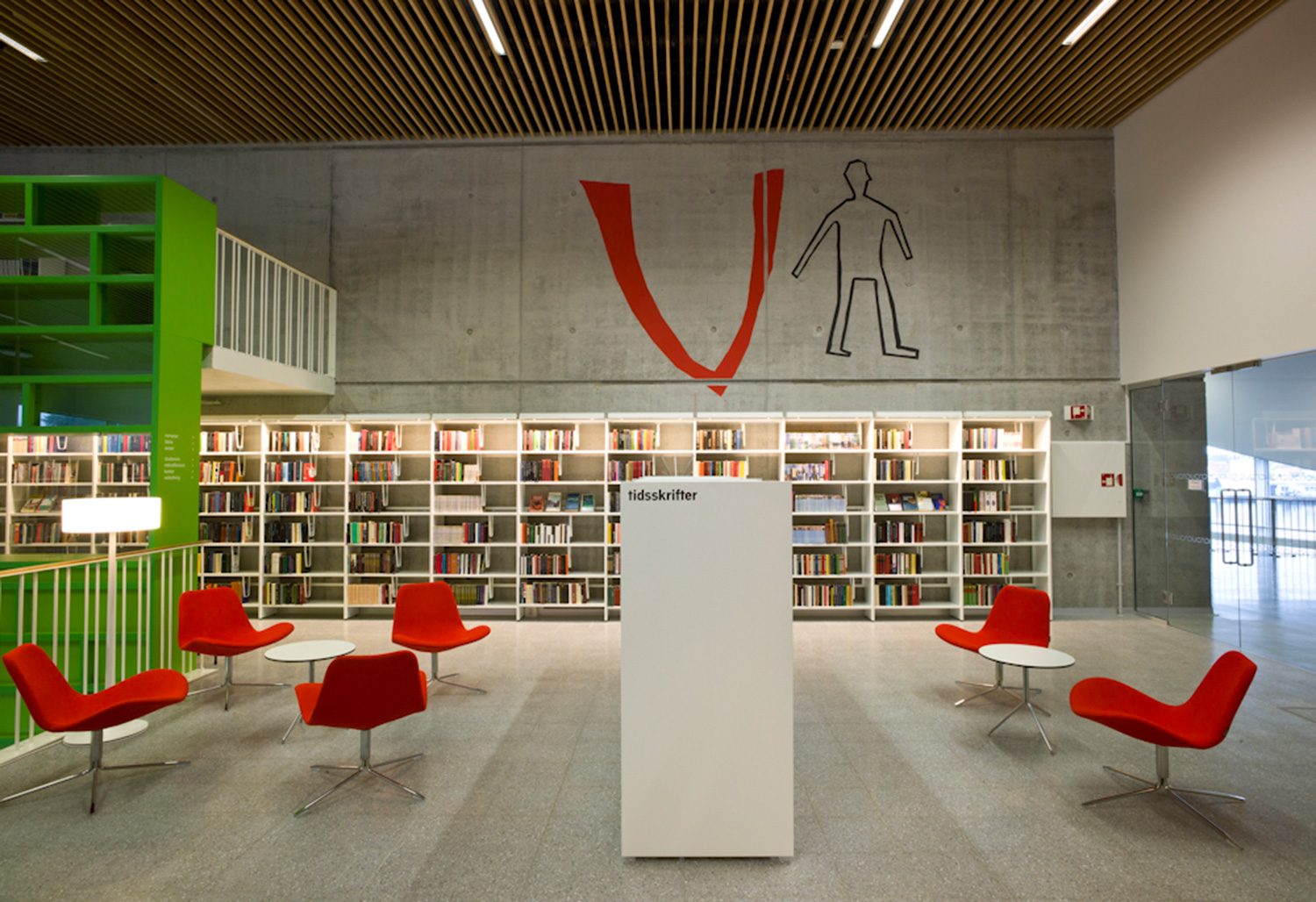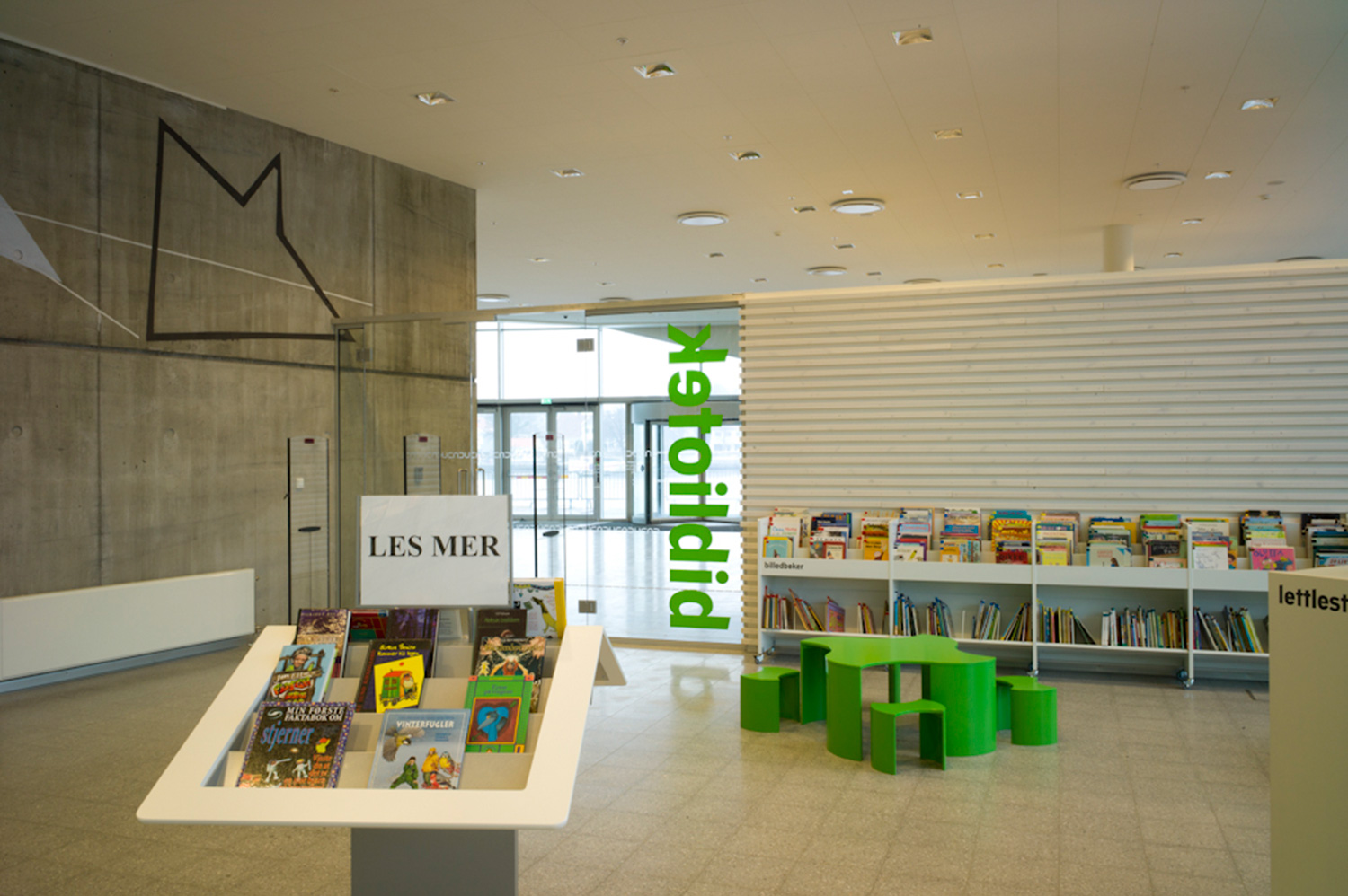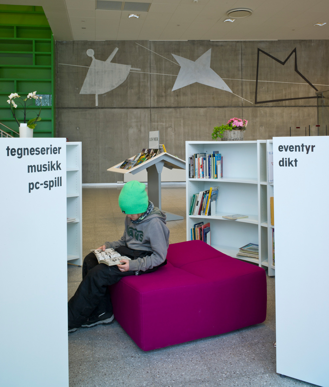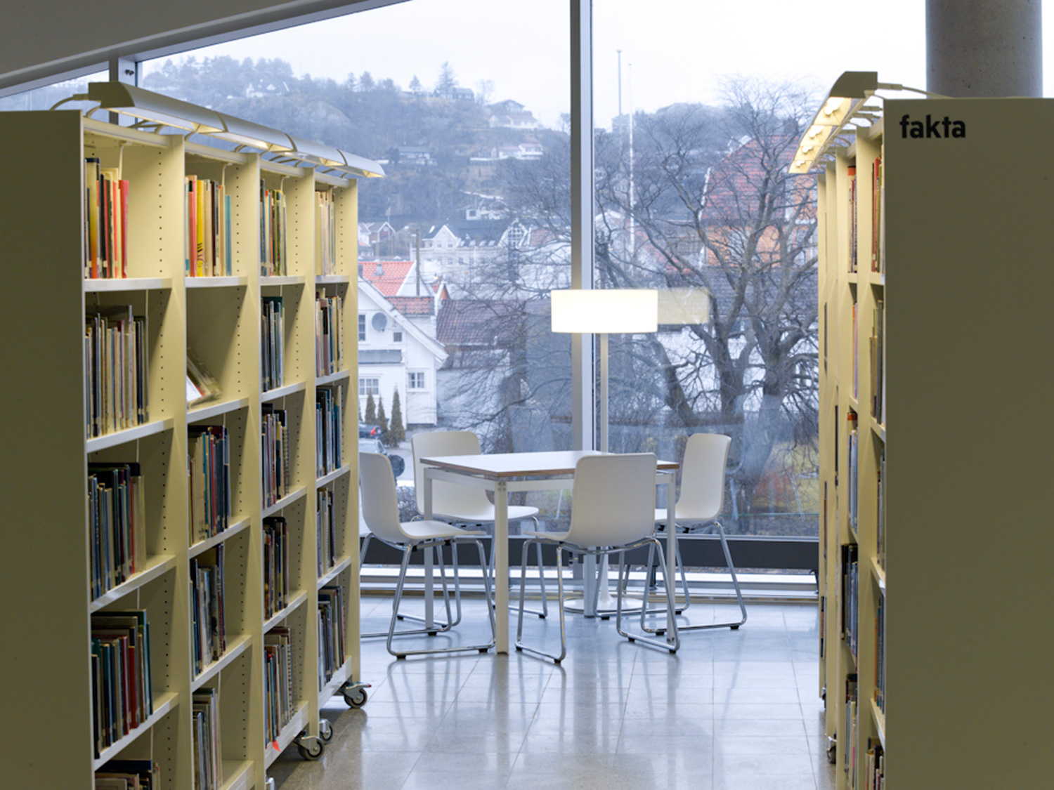 Kulturcentret i den bildsköna staden Mandal kallas ”Buen” (=bågen). Vi konsulterades på ett tidigt stadium i projektet för vår kunskap om biblioteksplanering. En av de viktiga uppgifterna var att bibehålla en dialog med arkitekterna hos 3XN genom hela processen, vilket vi gjorde.