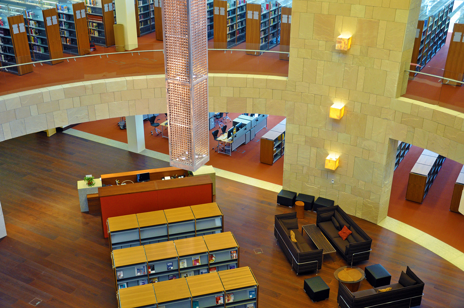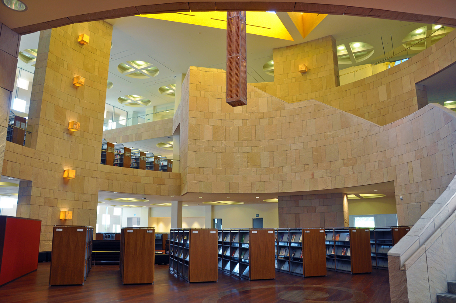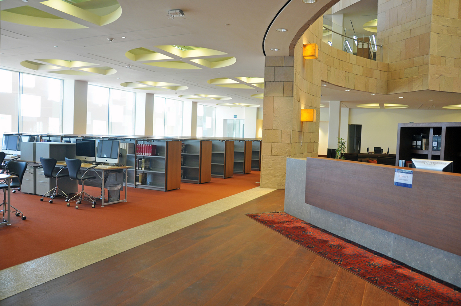 Byggnaden är 33.000 kvadratmeter stor och innehåller en tre våningar hög innergård, ett auditorium, klassrum, föreläsningssalar, kontor och ett nytt bibliotek. Med en nuvarande samling på 60.000 böcker, 4.500 DVD och tillgång till åtskilliga databaser är biblioteket ett av de mest omfattande i regionen.