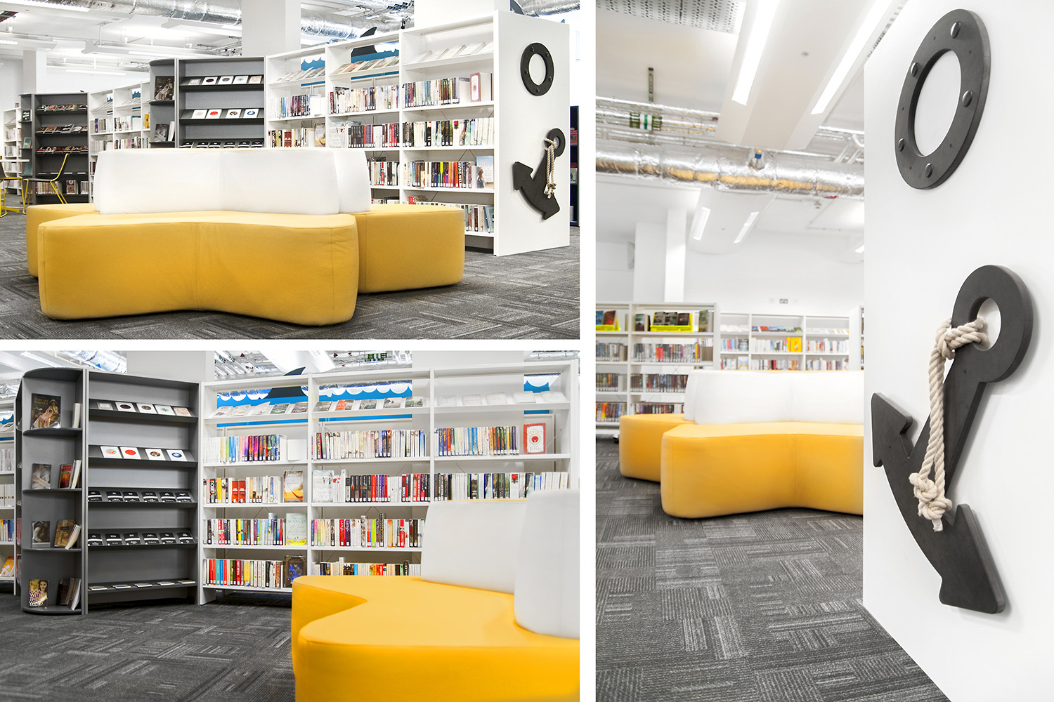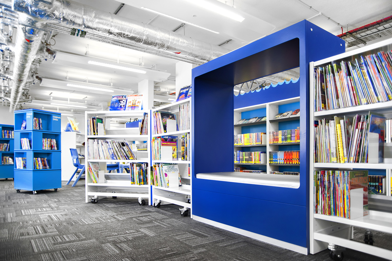 Då man önskat lyfta Greenwichs rika, maritima historia har barnavdelningen inretts i detta tema. Bilderbokslådor i form av båtar, hyllor dekorerade med vågor, ankare och ventiler för att lustfyllt väcka läslusten hos de små. Barnens bibliotek har även datorer och läsplattor tillgängliga för de yngre besökarna.