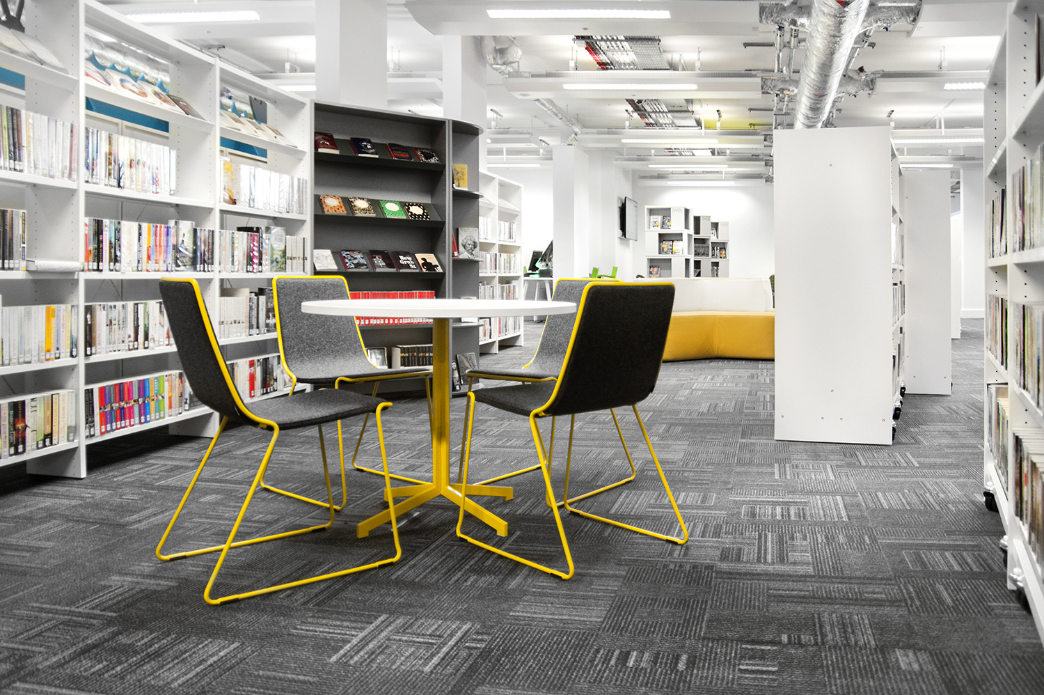 Thedesignconcept presenterade flera spännande och stimulerande inredningslösningar, laddstationer och digital teknik till denna inspirerande bibliotekslokal.