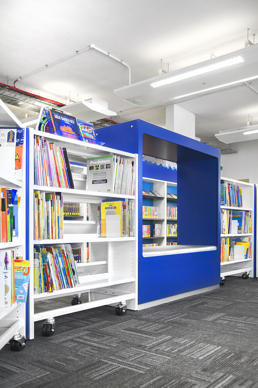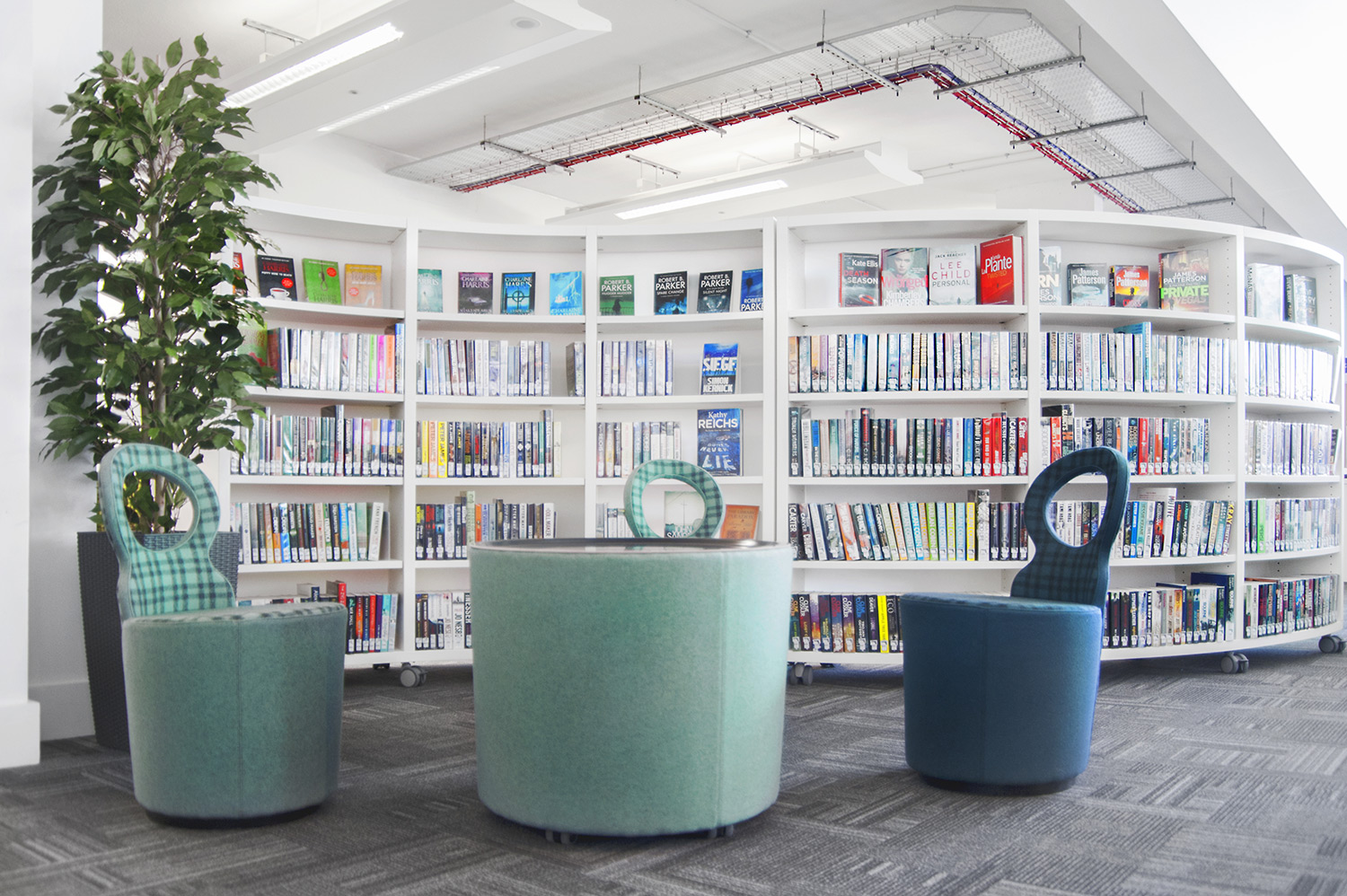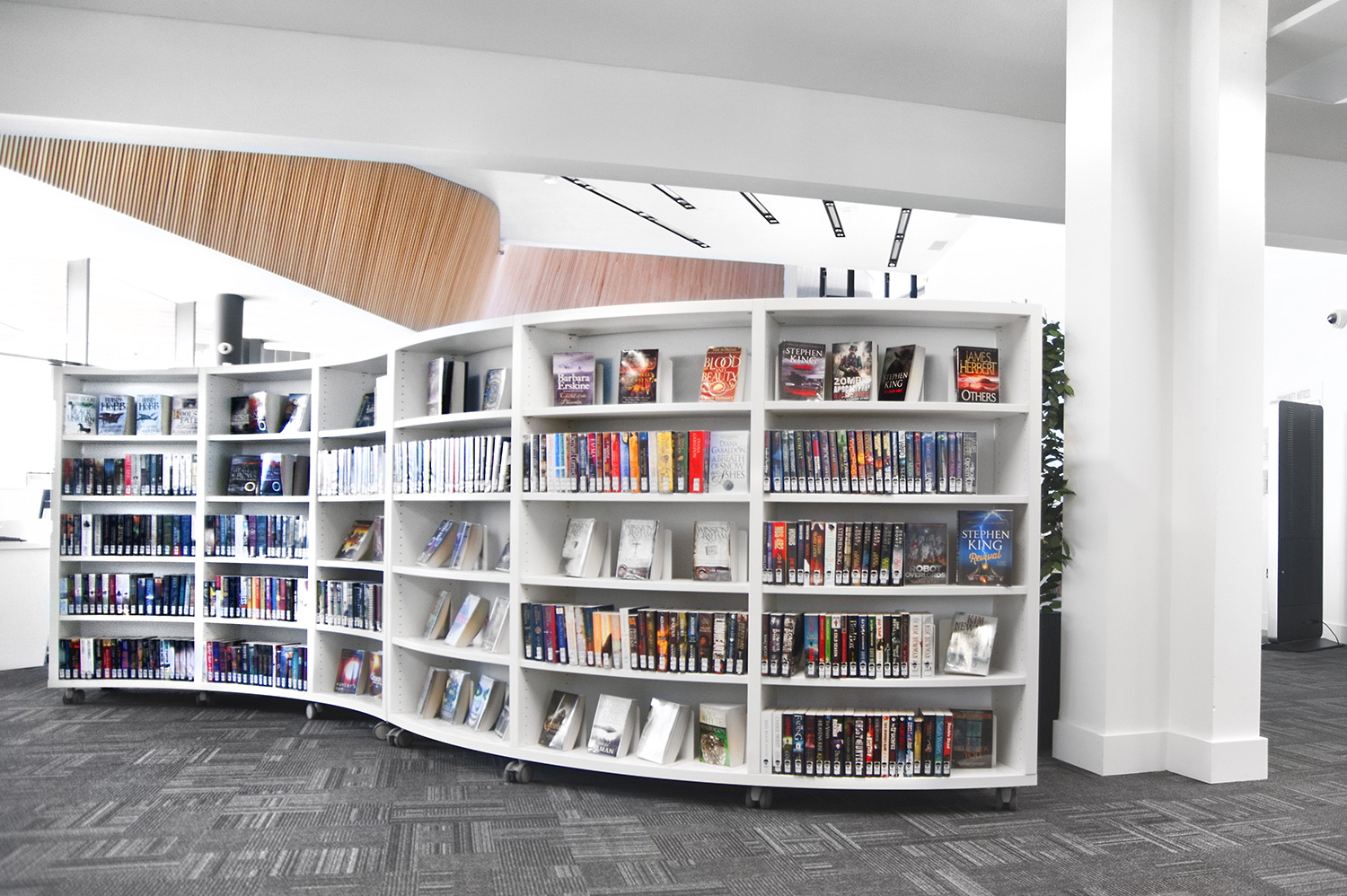 Överallt på biblioteket syns digitala paneler på hyllgavlarna som gör det möjligt för kunderna att leta efter specifika böcker och författare. Man får också tillgång till bibliotekets egna app som lyfter fram nya böcker och tjänster som finns tillgängliga för alla besökare.