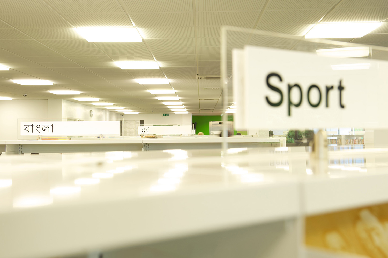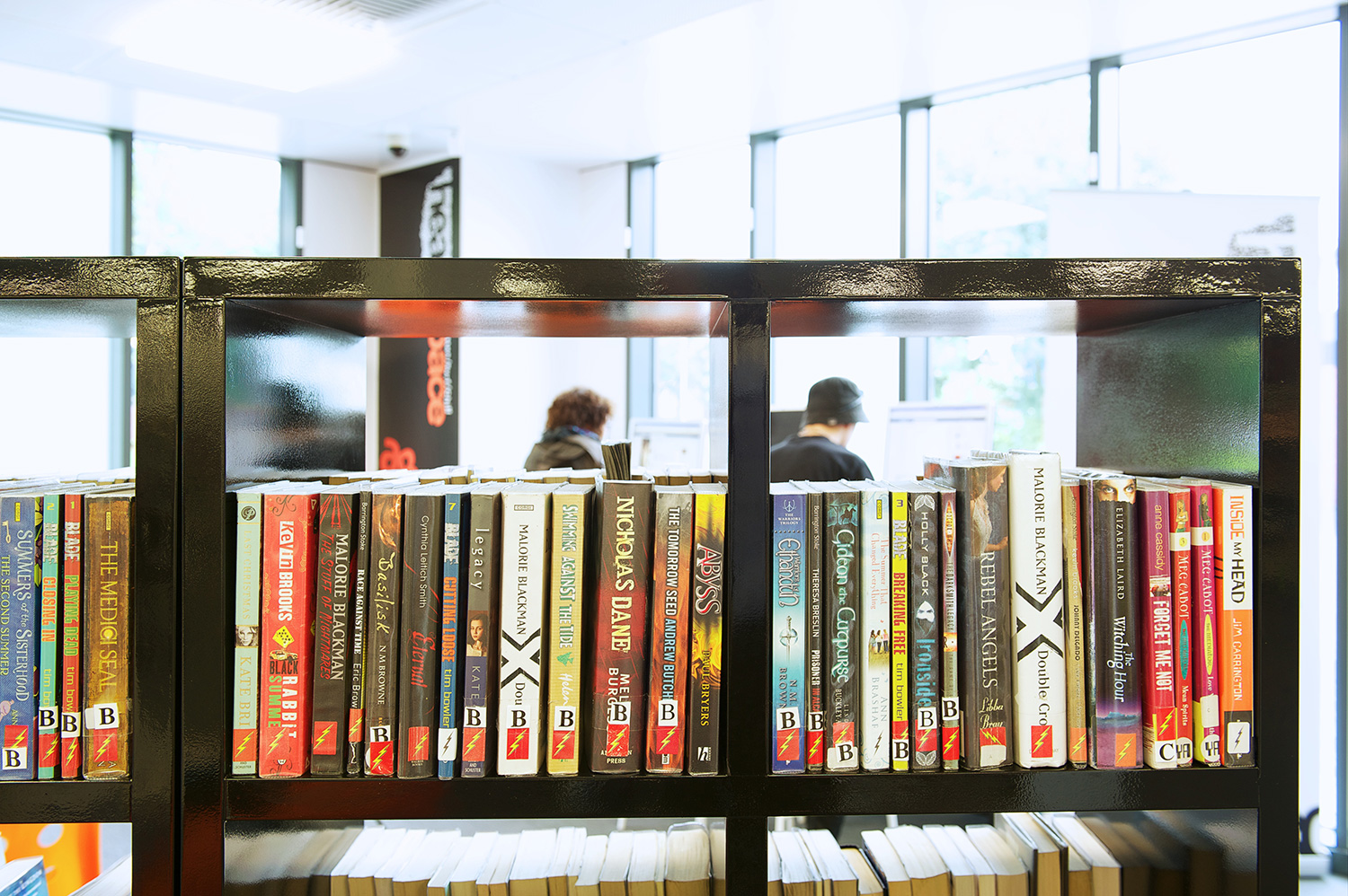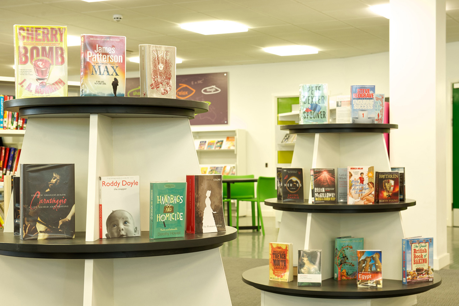 Produkter som används på Longsight bibliotek, Manchester, Storbritannien