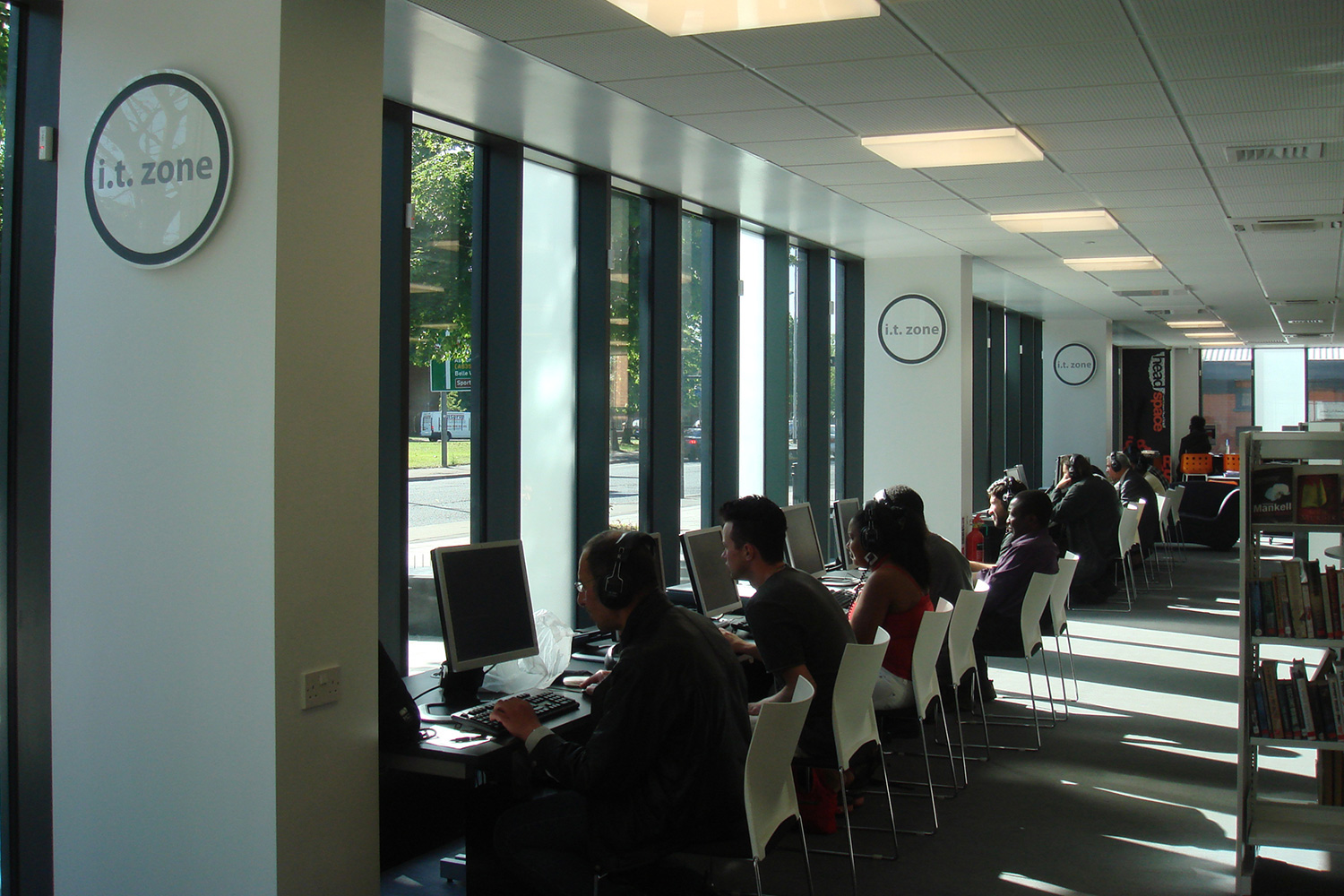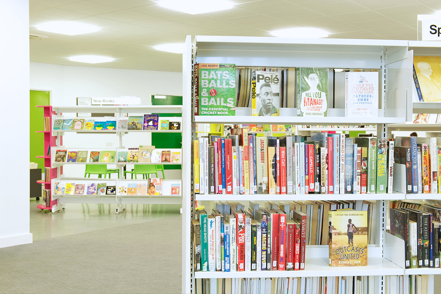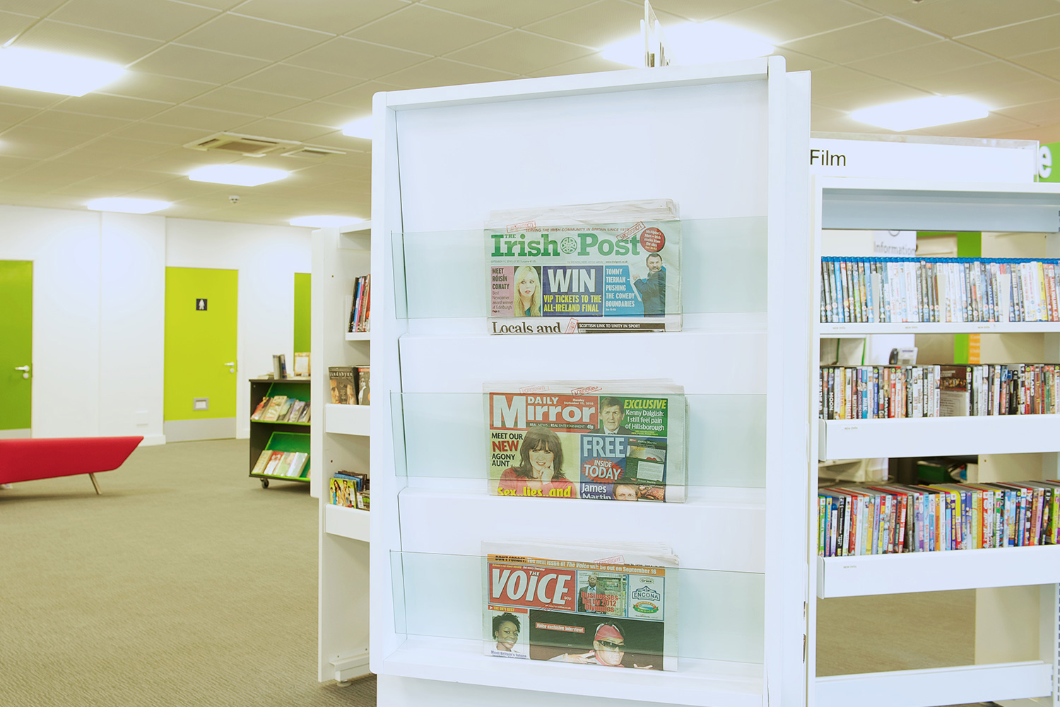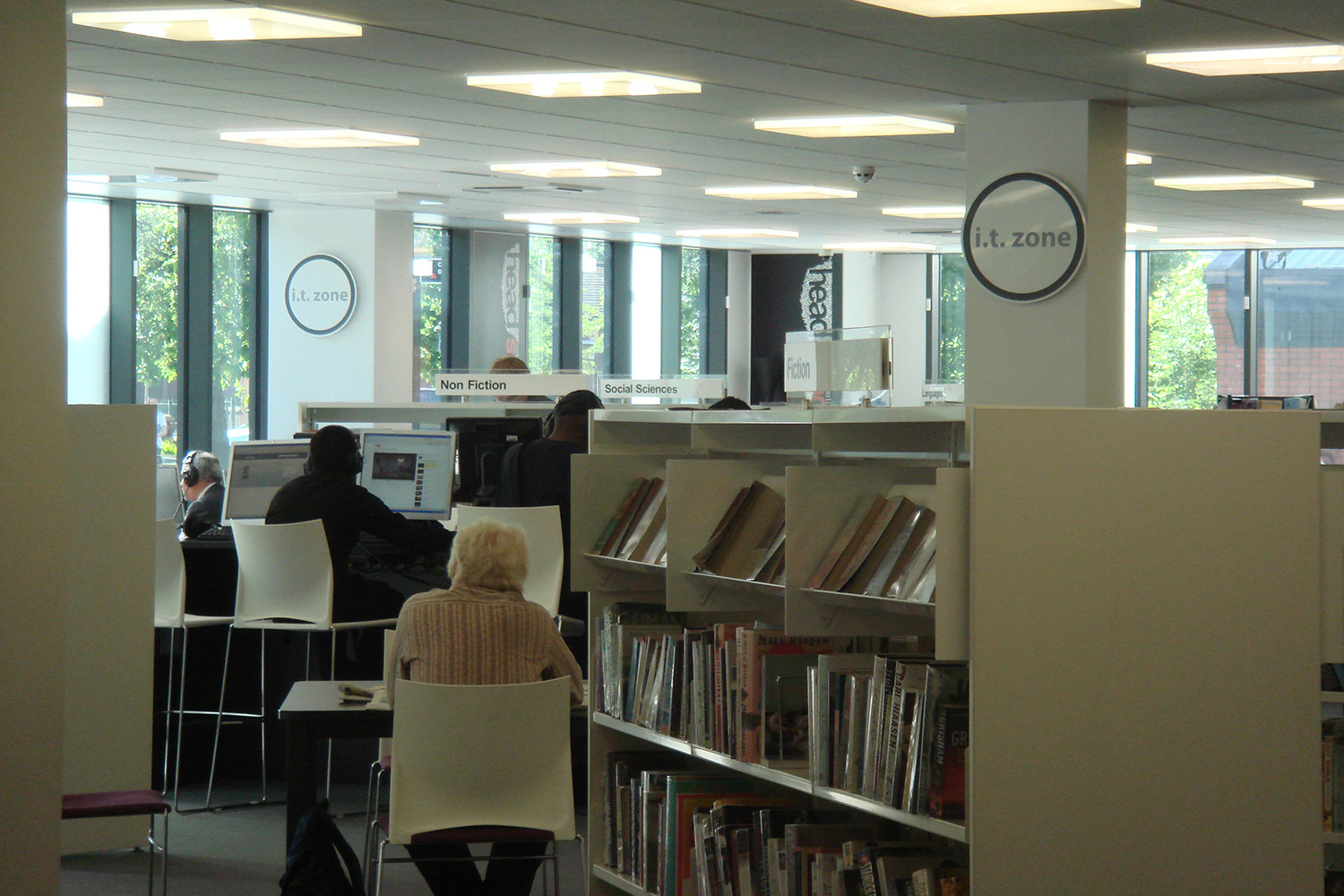 Produkter som används på Longsight bibliotek, Manchester, Storbritannien
